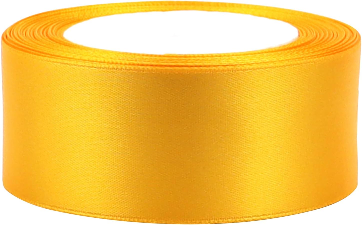 Yellow Solid Satin Ribbon 1-1/2 Inch 25 Yards Solid Polyester Fabric Ribbon for Gift Wrapping Wedding Christmas Baby Shower Birthday Party Decoration Handmade Immortal Flower Craft