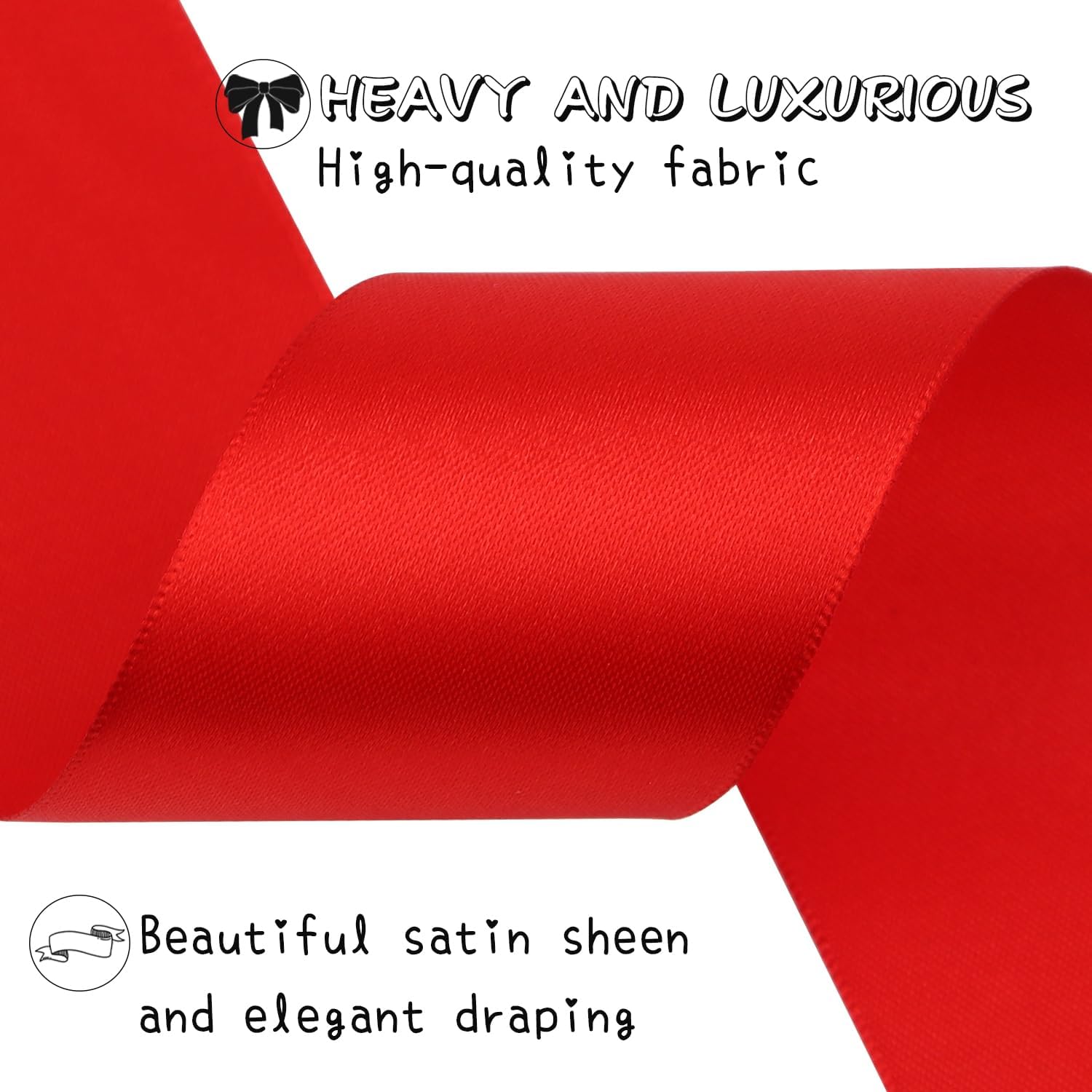 Red Solid Satin Ribbon 2 Inch 25 Yards Solid Polyester Fabric Ribbon for Gift Wrapping Wedding Christmas Baby Shower Birthday Party Decoration Handmade Immortal Flower Craft