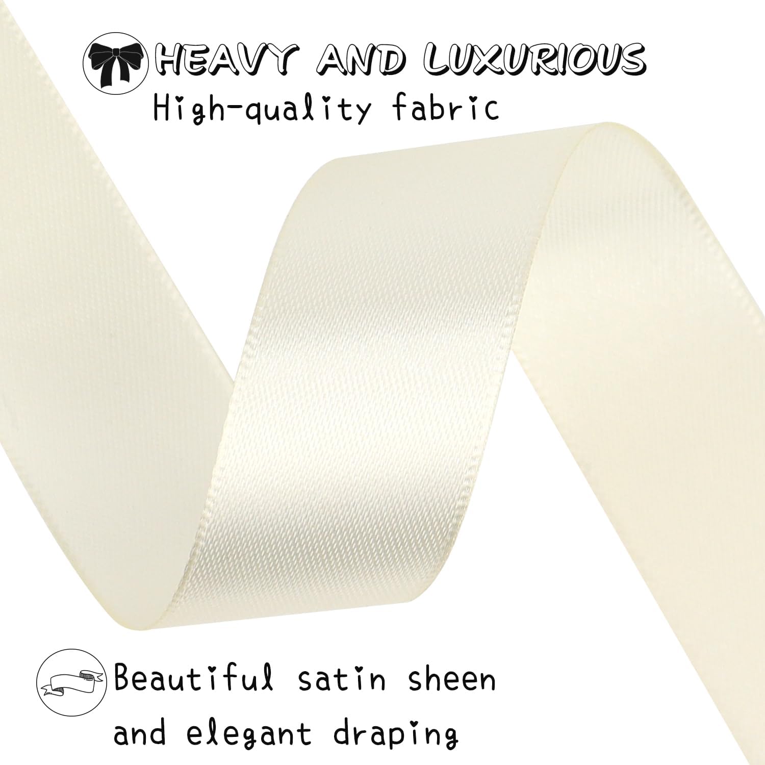 Rice White Solid Satin Ribbon 1 Inch 25 Yards Solid Polyester Fabric Ribbon for Gift Wrapping Wedding Christmas Baby Shower Birthday Party Decoration Handmade Immortal Flower Craft