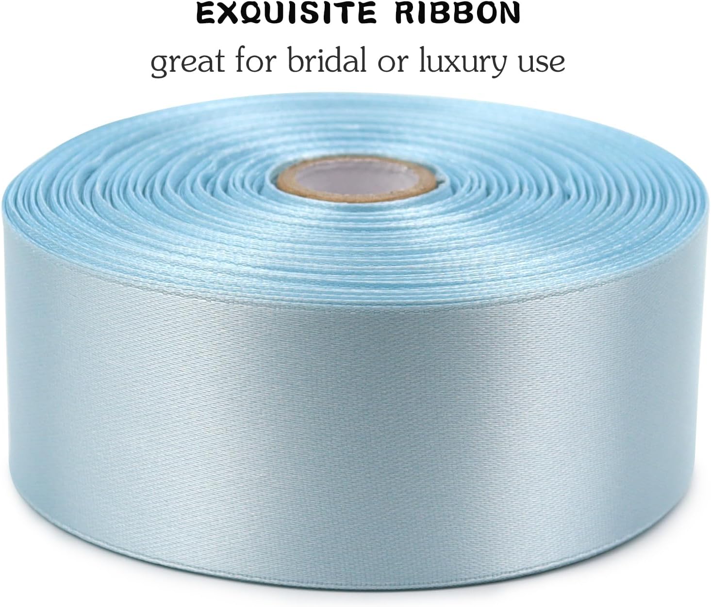 Sky Blue Solid Satin Ribbon 1-1/2 Inch 50 Yards Solid Polyester Fabric Ribbon for Gift Wrapping Wedding Christmas Baby Shower Birthday Party Decoration Handmade Immortal Flower Craft