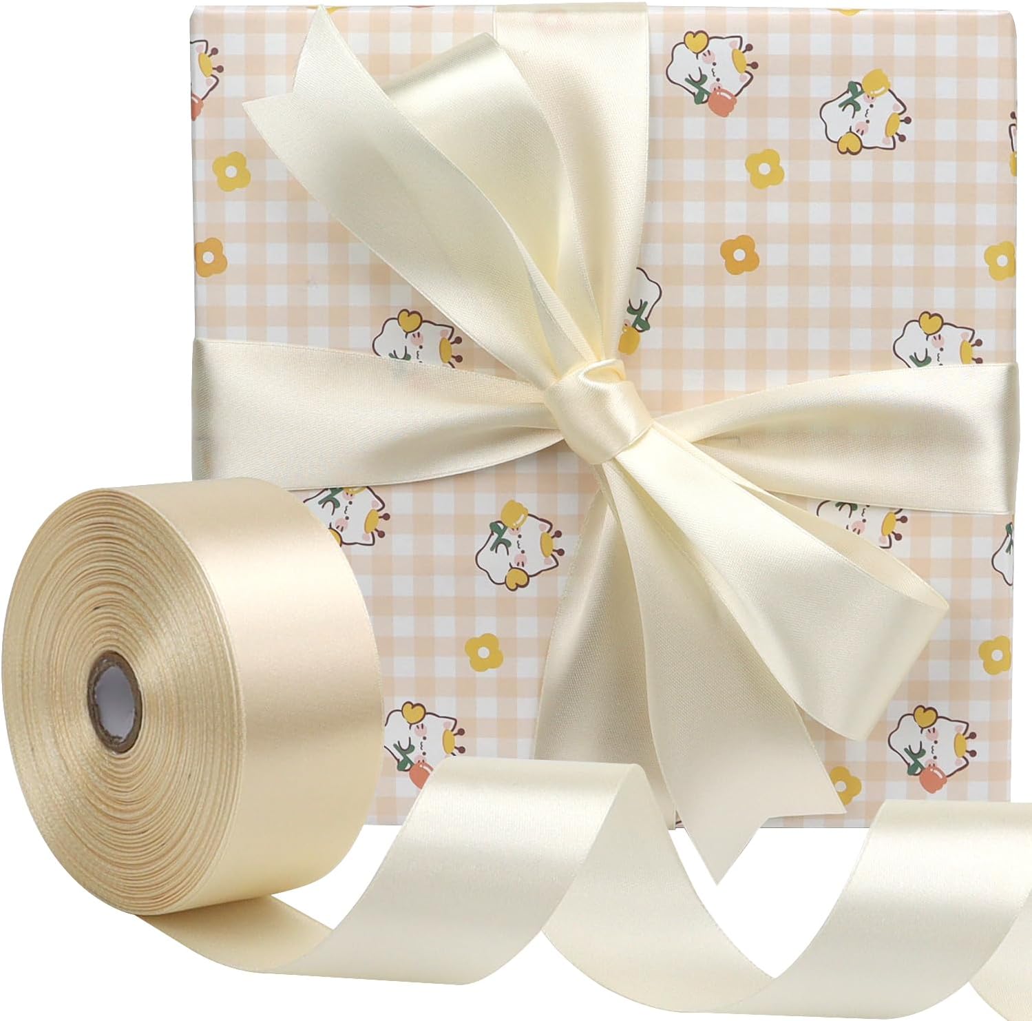 Rice White Solid Satin Ribbon 1-1/2 Inch 50 Yards Solid Polyester Fabric Ribbon for Gift Wrapping Wedding Christmas Baby Shower Birthday Party Decoration Handmade Immortal Flower Craft