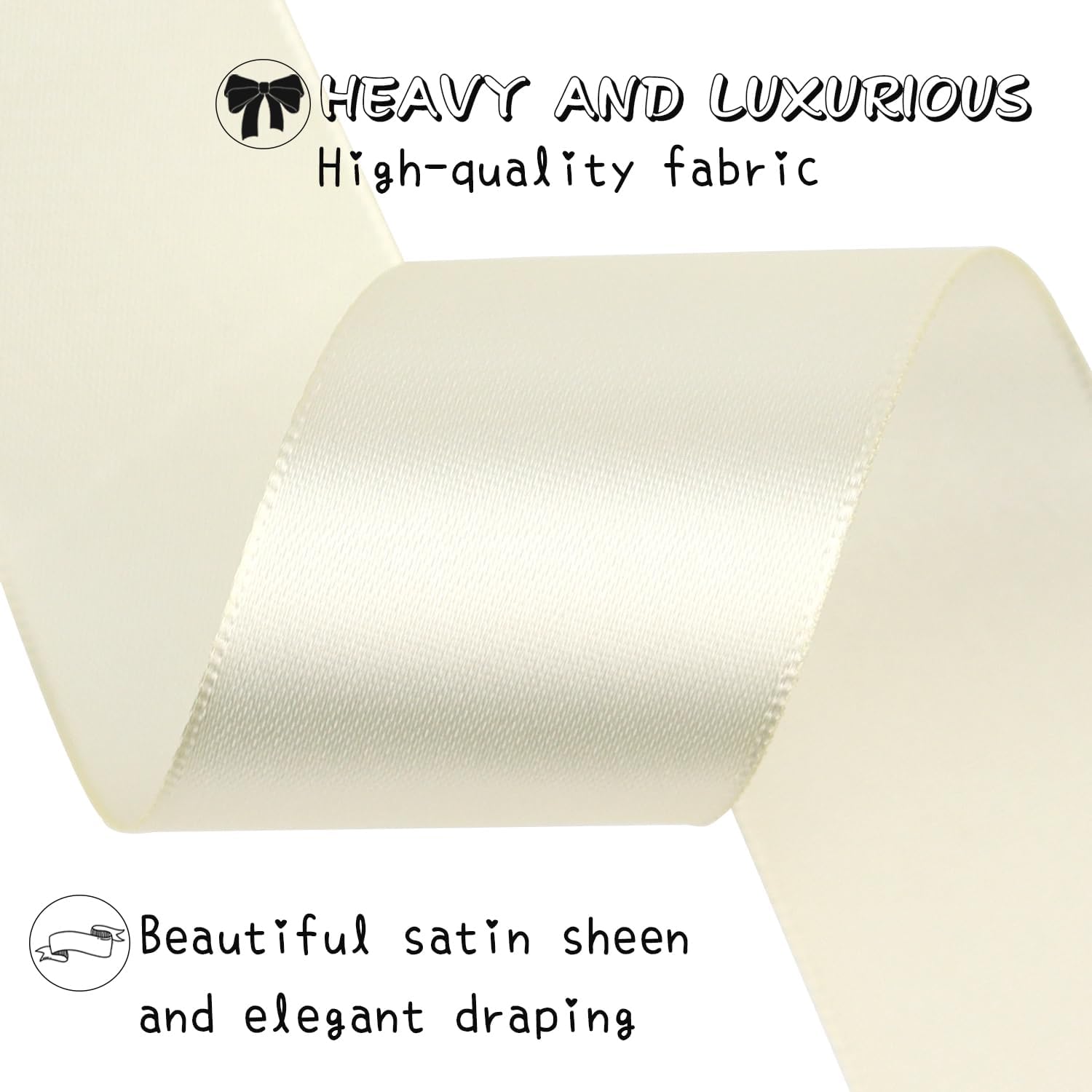 Rice White Solid Satin Ribbon 1-1/2 Inch 25 Yards Solid Polyester Fabric Ribbon for Gift Wrapping Wedding Christmas Baby Shower Birthday Party Decoration Handmade Immortal Flower Craft