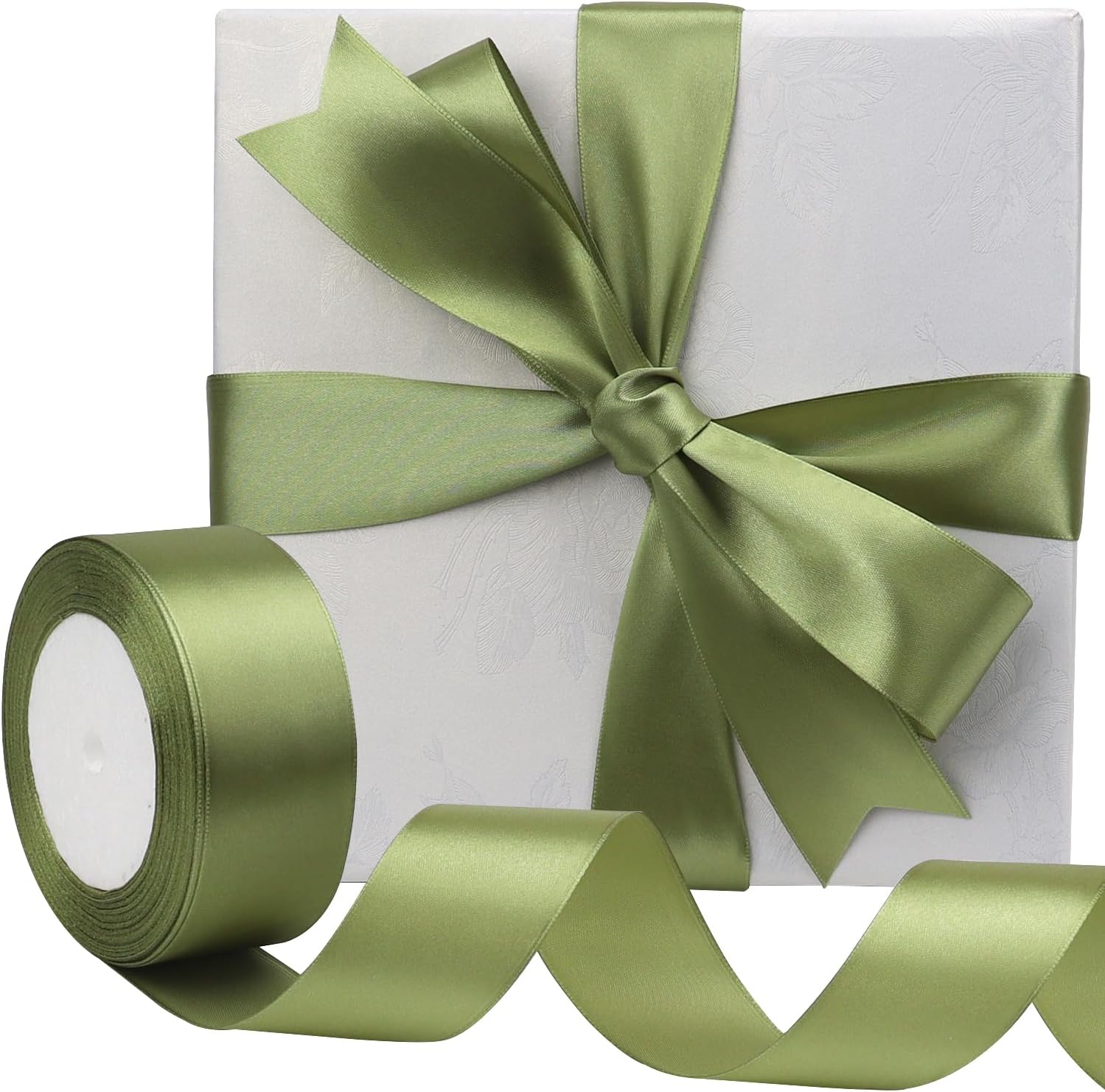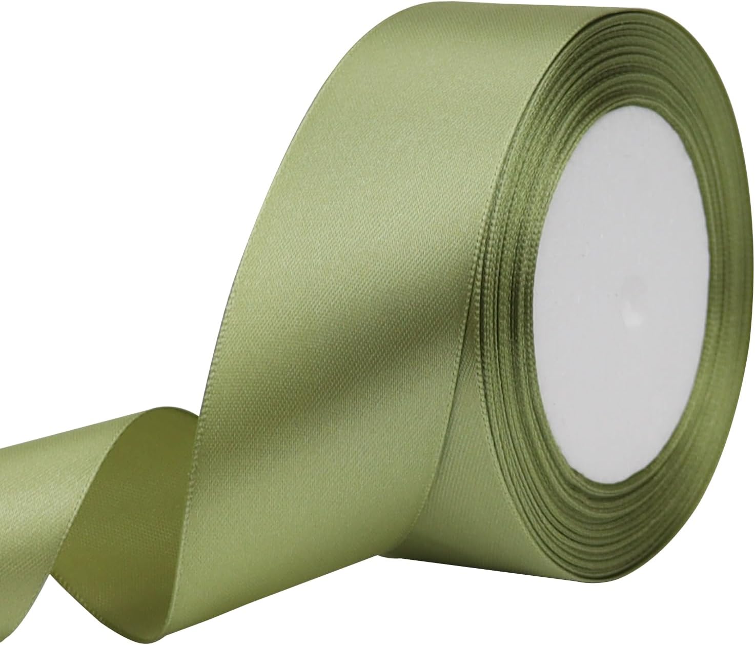 Olive Green Solid Satin Ribbon 1-1/2 Inch 25 Yards Solid Polyester Fabric Ribbon for Gift Wrapping Wedding Christmas Baby Shower Birthday Party Decoration Handmade Immortal Flower Craft