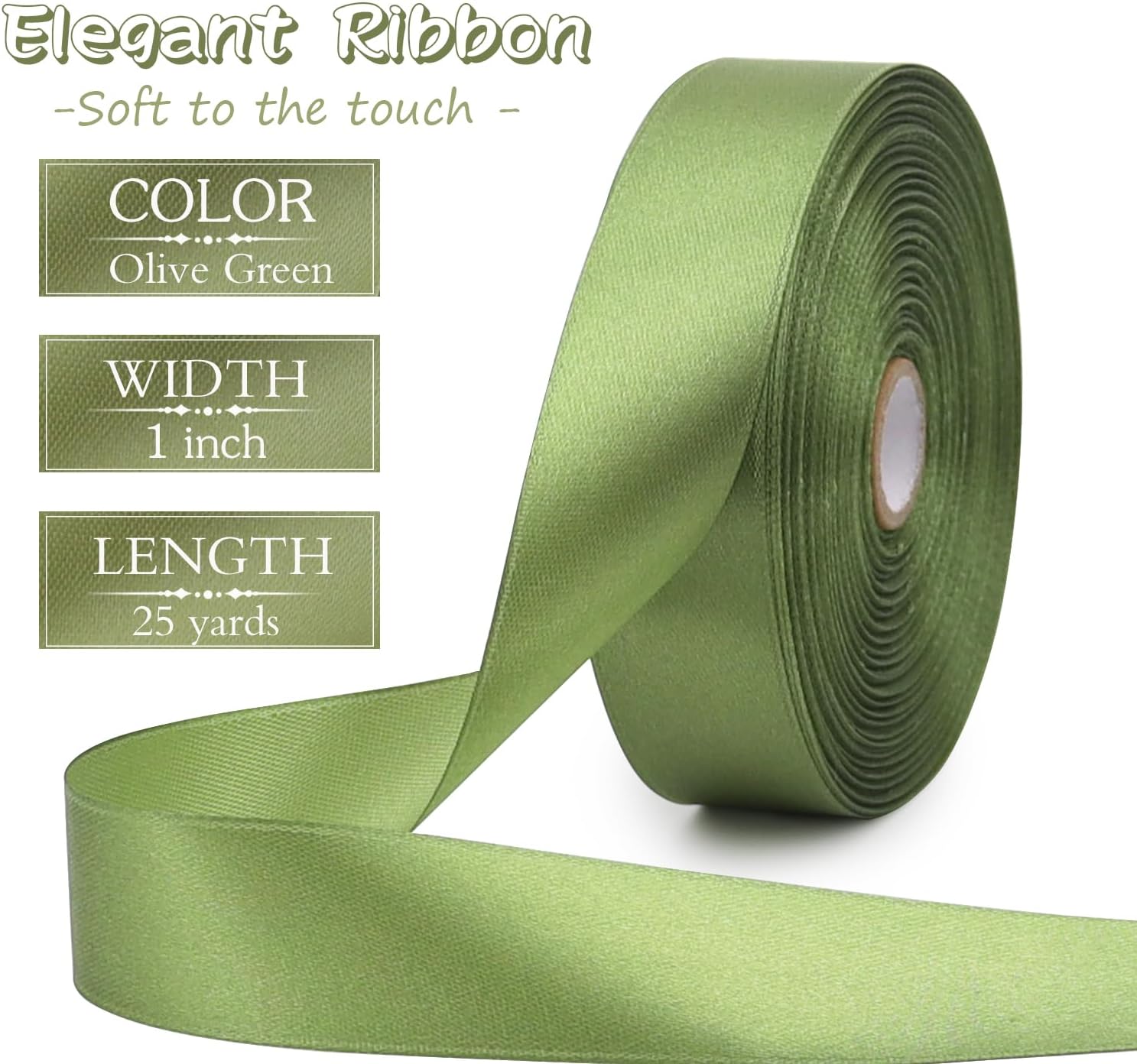 Olive Green Solid Satin Ribbon 1 Inch 50 Yards Solid Polyester Fabric Ribbon for Gift Wrapping Wedding Christmas Baby Shower Birthday Party Decoration Handmade Immortal Flower Craft