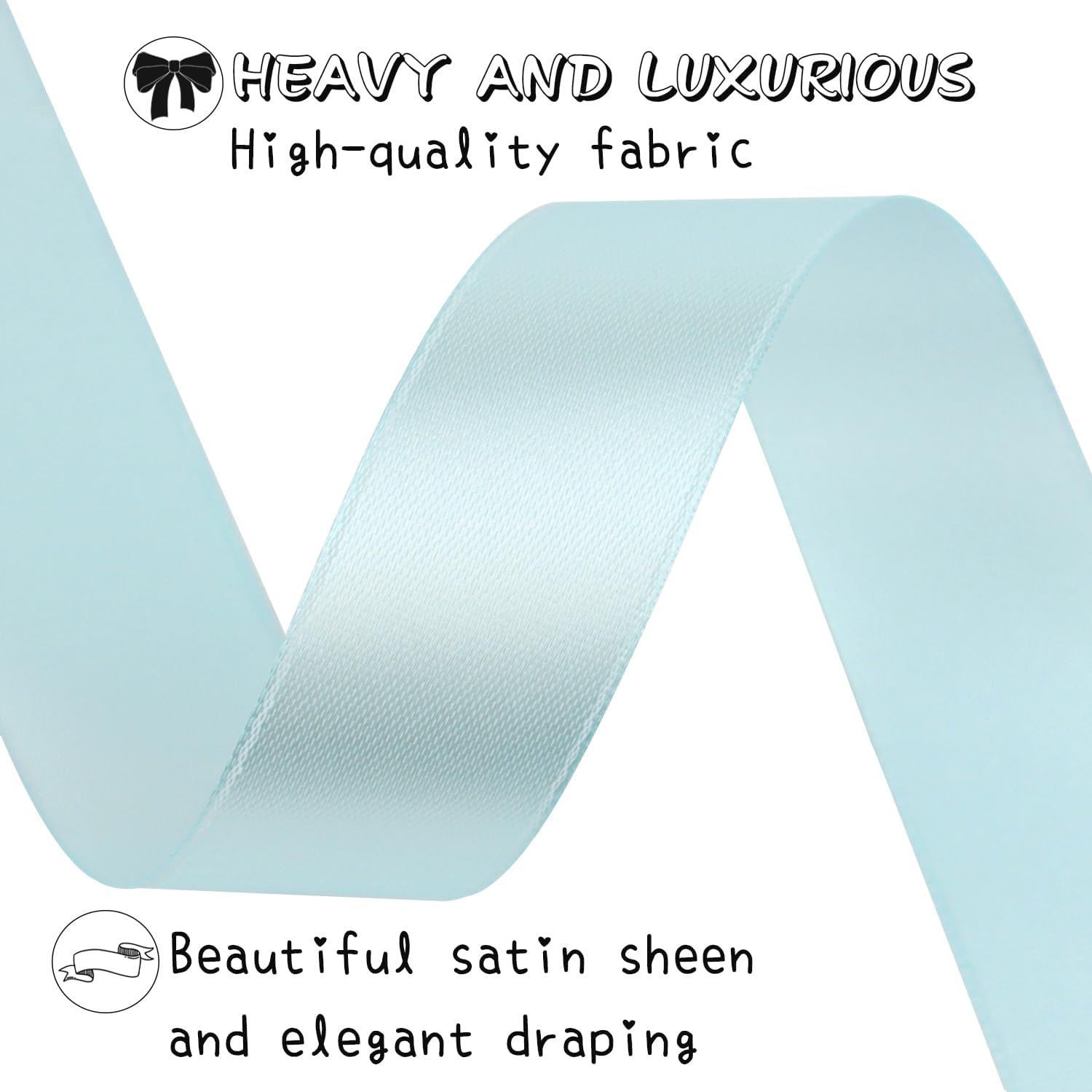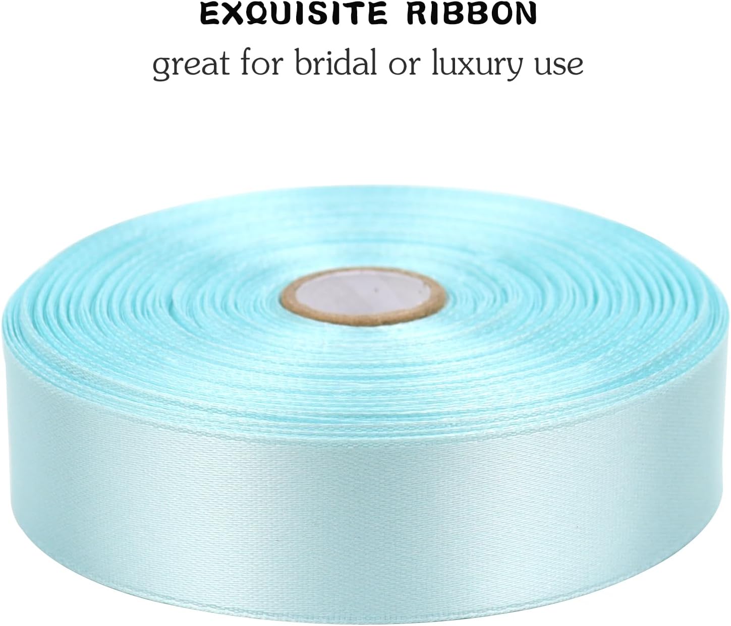 Light Blue Solid Satin Ribbon 1 Inch 50 Yards Solid Polyester Fabric Ribbon for Gift Wrapping Wedding Christmas Baby Shower Birthday Party Decoration Handmade Immortal Flower Craft