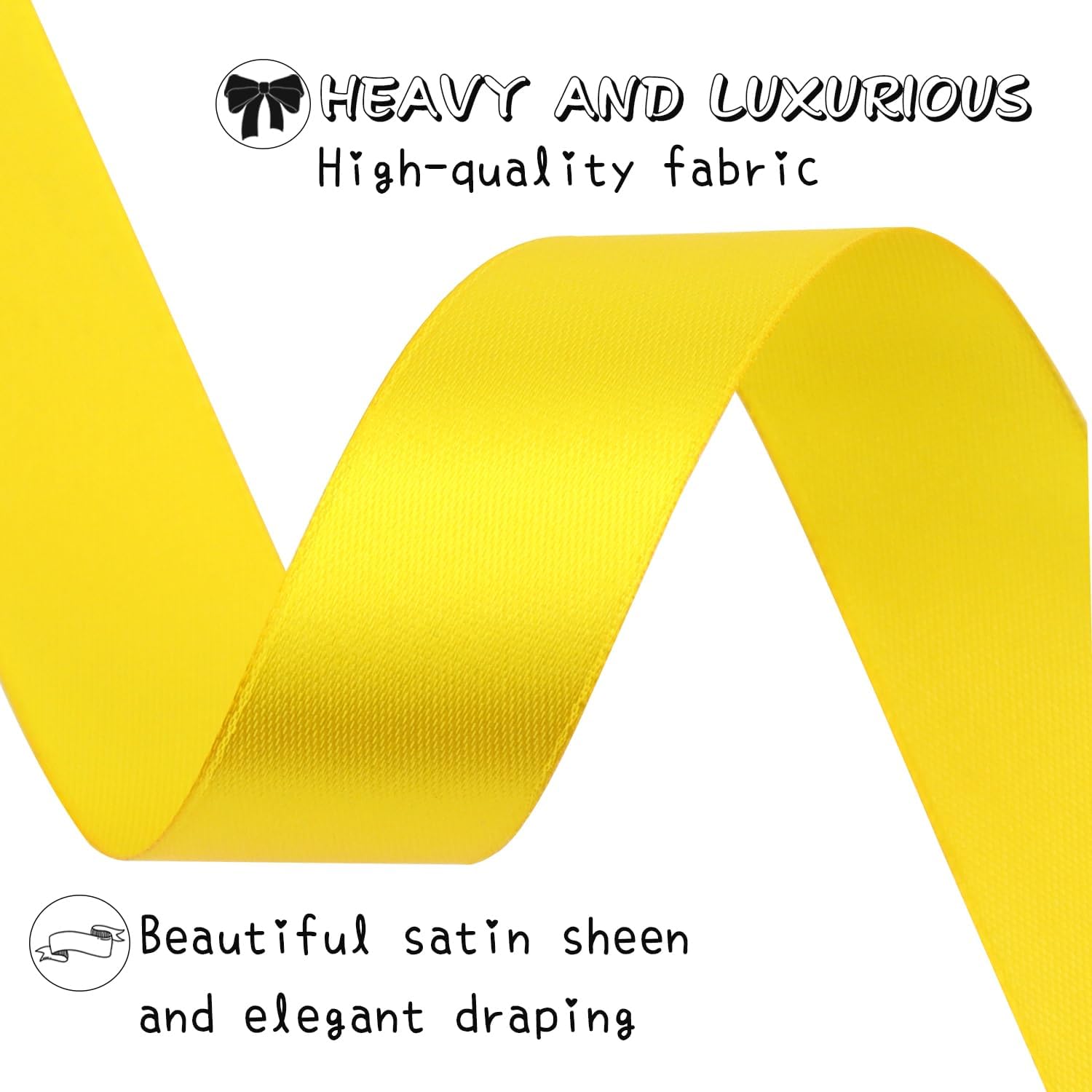 Yellow Solid Satin Ribbon 1 Inch 50 Yards Solid Polyester Fabric Ribbon for Gift Wrapping Wedding Christmas Baby Shower Birthday Party Decoration Handmade Immortal Flower Craft