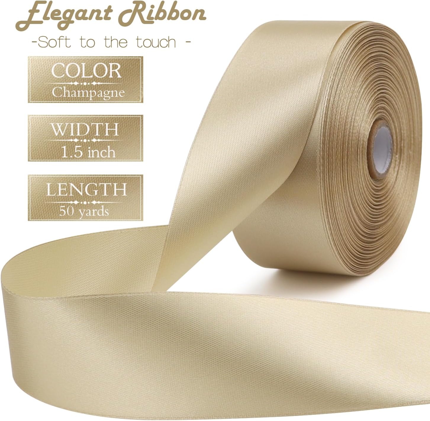 Champagne Solid Satin Ribbon 1-1/2 Inch 50 Yards Solid Polyester Fabric Ribbon for Gift Wrapping Wedding Christmas Baby Shower Birthday Party Decoration Handmade Immortal Flower Craft
