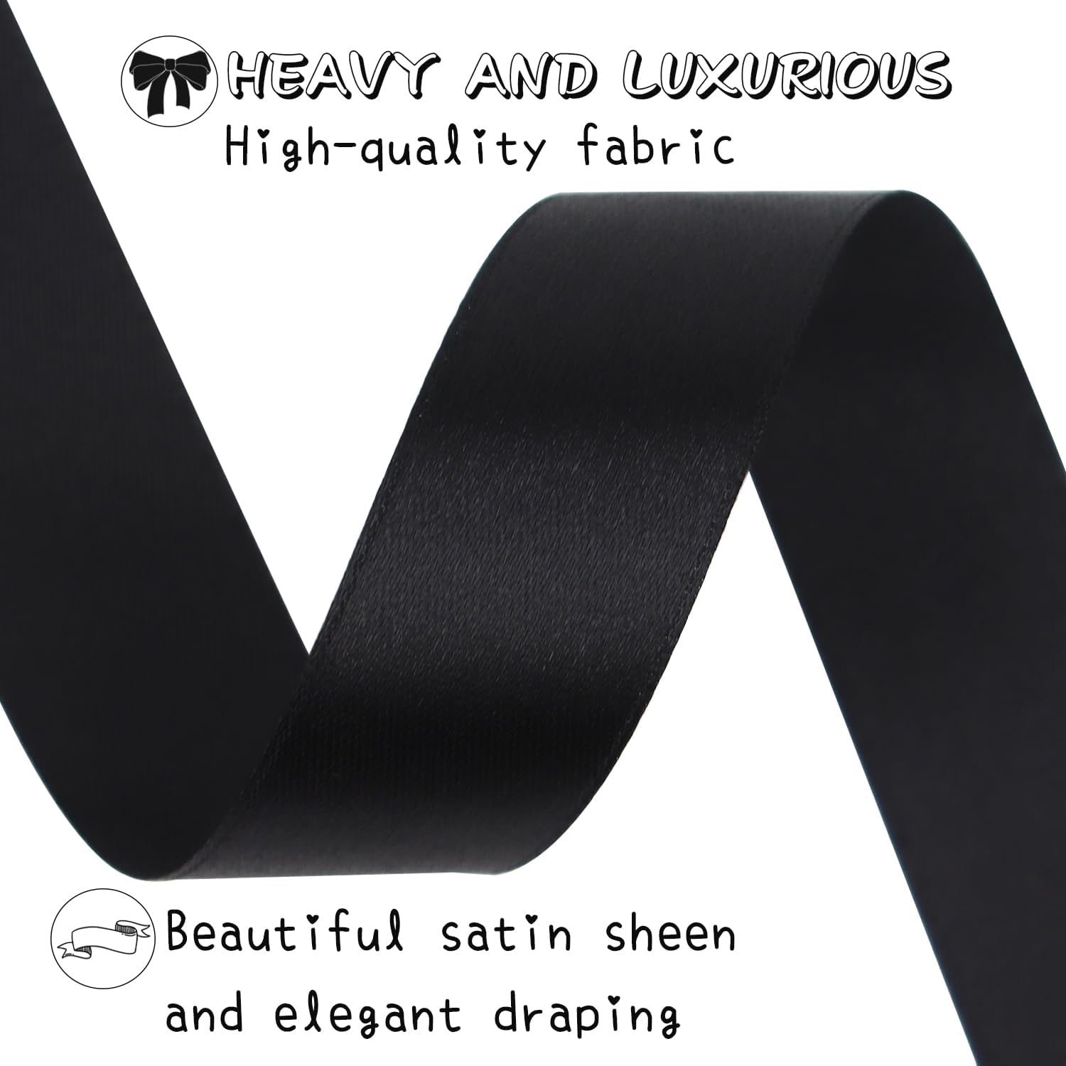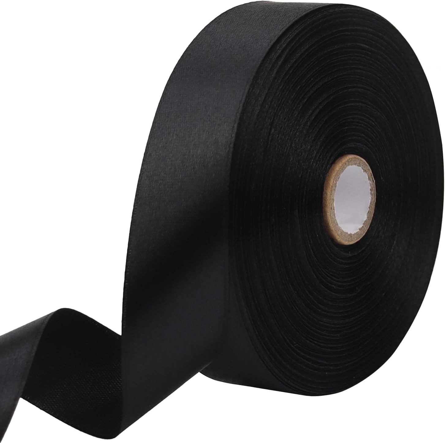 Black Solid Satin Ribbon 1 Inch 50 Yards Solid Polyester Fabric Ribbon for Gift Wrapping Wedding Christmas Baby Shower Birthday Party Decoration Handmade Immortal Flower Craft