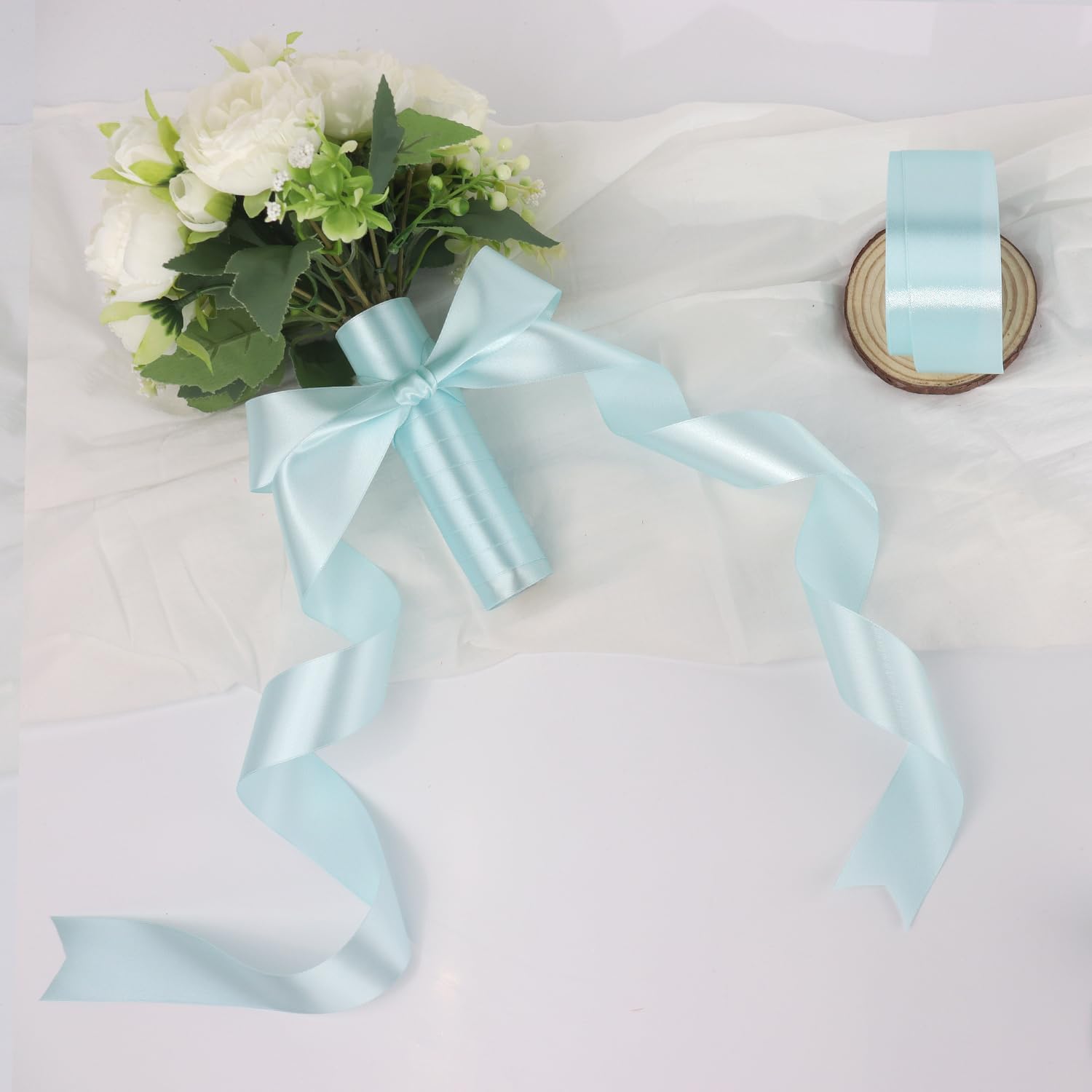 Light Blue Solid Satin Ribbon 1-1/2 Inch 50 Yards Solid Polyester Fabric Ribbon for Gift Wrapping Wedding Christmas Baby Shower Birthday Party Decoration Handmade Immortal Flower Craft