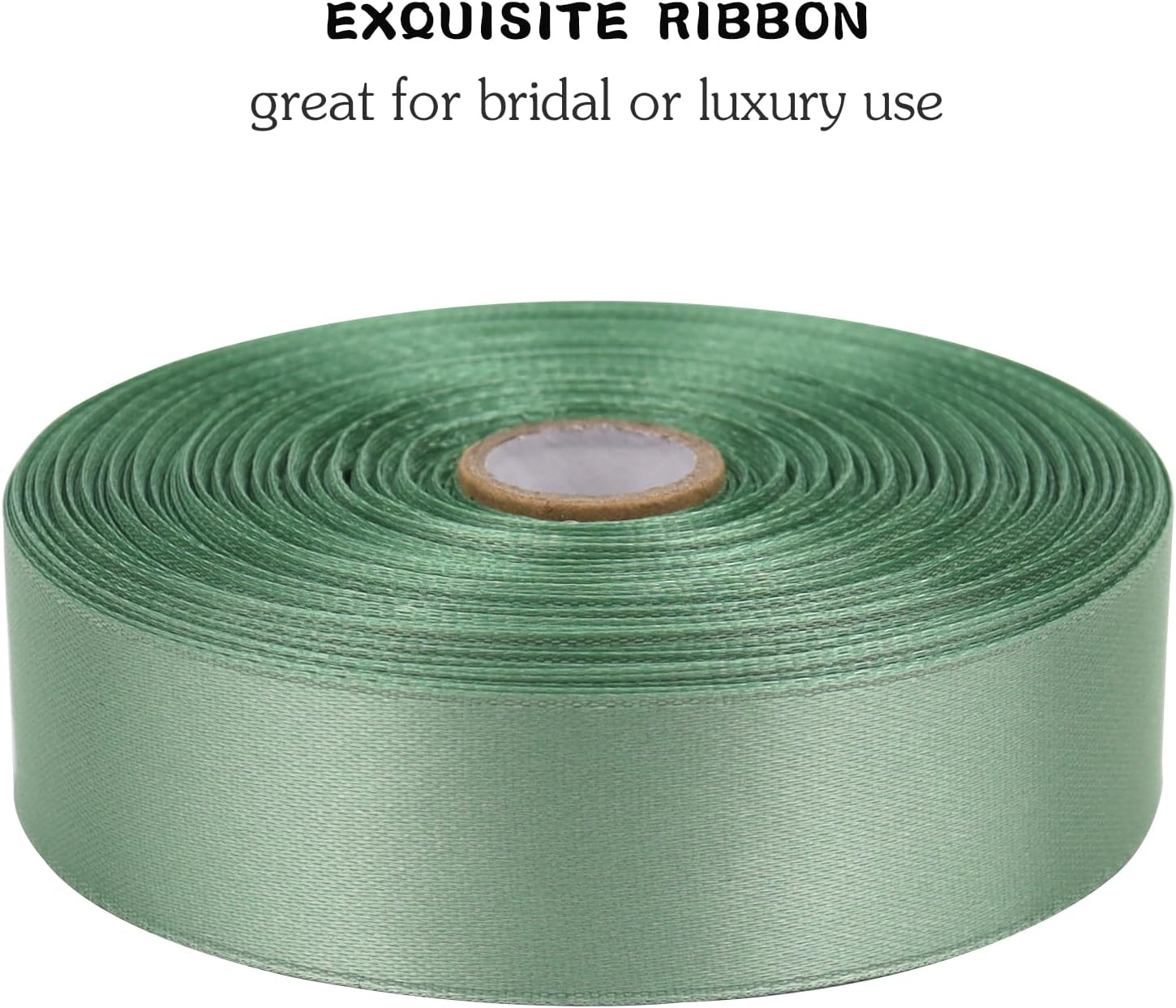 Sage Green Solid Satin Ribbon 1 Inch 50 Yards Solid Polyester Fabric Ribbon for Gift Wrapping Wedding Christmas Baby Shower Birthday Party Decoration Handmade Immortal Flower Craft