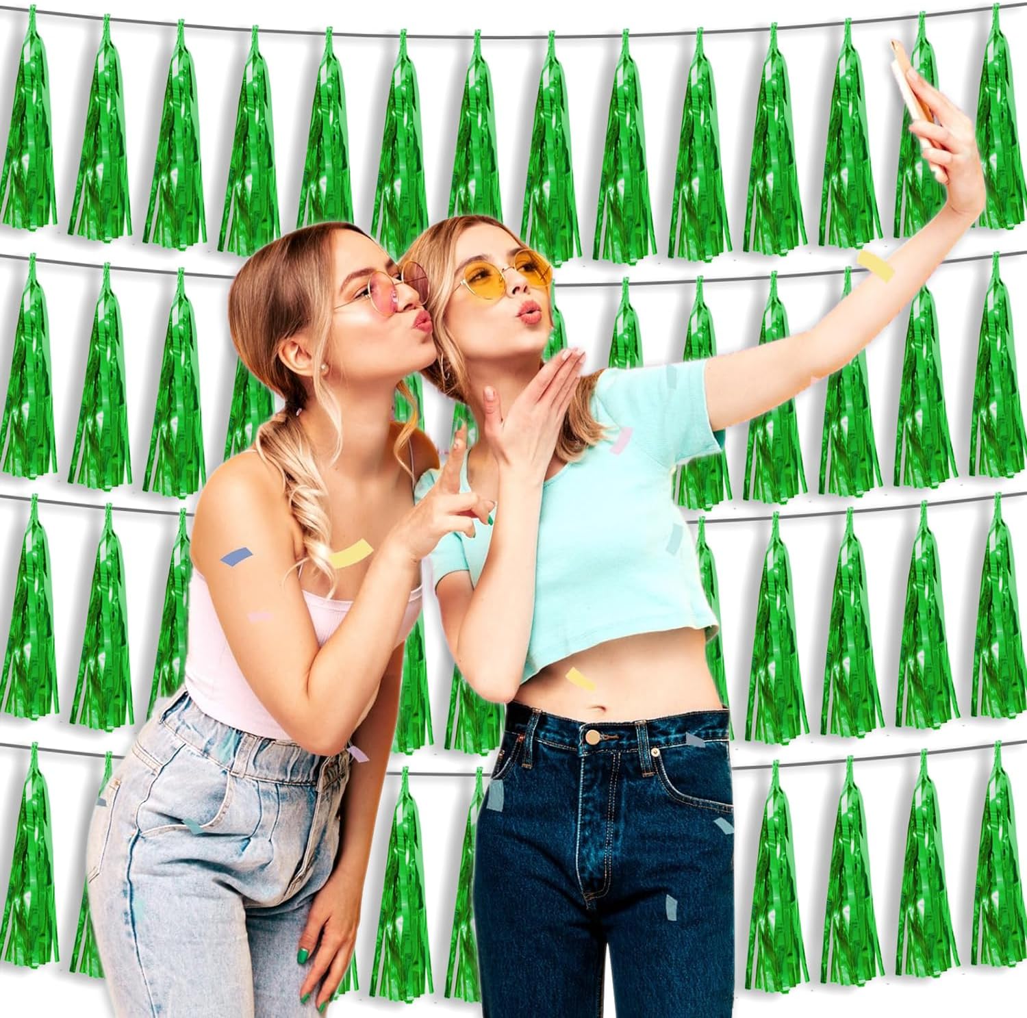 - 【Package Includes】The total length of the green birthday tassels banner is 40 feet, divided into 4 strips, each 10 feet long. Each banner contains 15 tassels, and each tassel measures 14 inches, for birthday decorations many occasions uitable for Patriotic display, Homecoming Float, Christmas Float, ecorative metal trailers, graduation floats etc