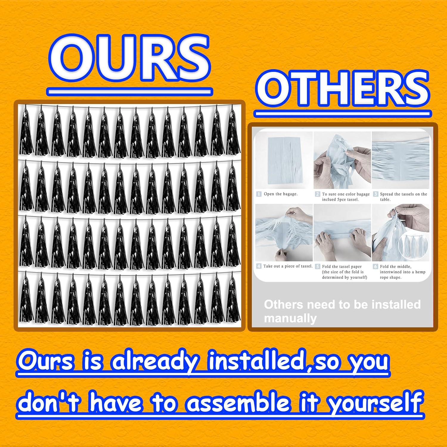 - 【Premium Reusable Tassel Material】: Our glitter fringe garland is made of high-quality PET material, with the virtue of nice craftsmanship and light weight which is safe and recyclable. And the smooth touch makes tassels easy to tidy up. They come with white ribbon for hanging, and garland tassels hang perpendicular to the string, and are adjustable to provide you with the option of spreading the tassels out or piecing them closer together.