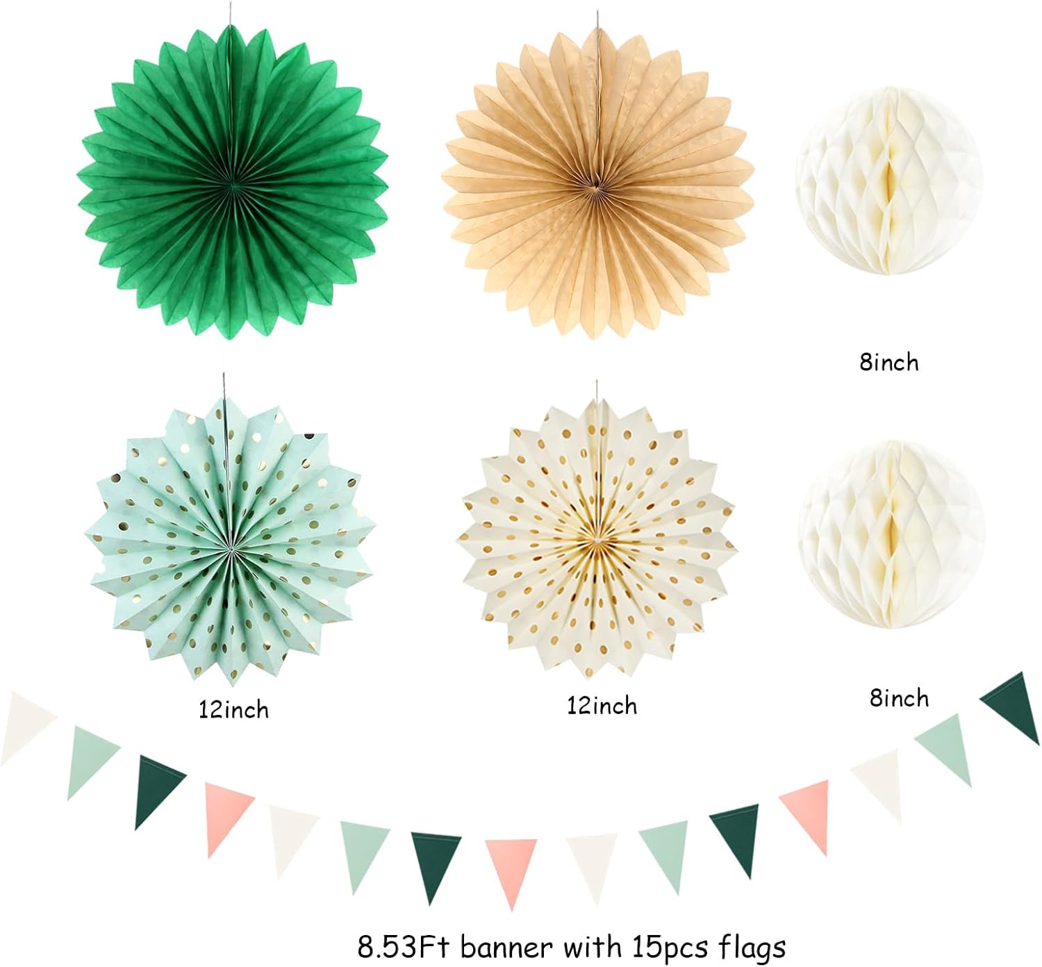 - 【Sage Green Pink Party Decorations Kit Includes】The party decorations kits include 9pcs tissue paper flowers: 3pcs 8" and 3pcs 10" and 3pcs 12" in sage green pink color, 4pcs 8inch paper lanterns,4pcs 12" paper fan,2pcs 8" paper homoneycomb and banner.