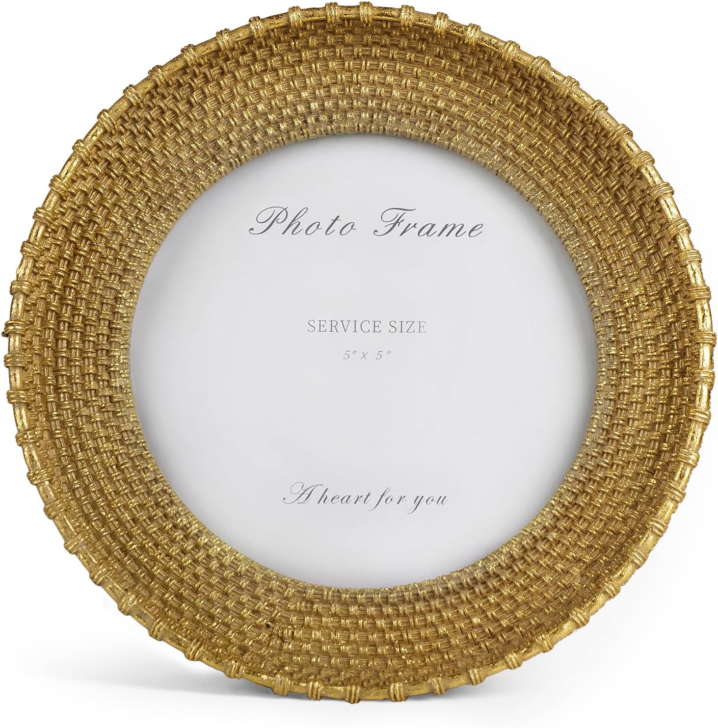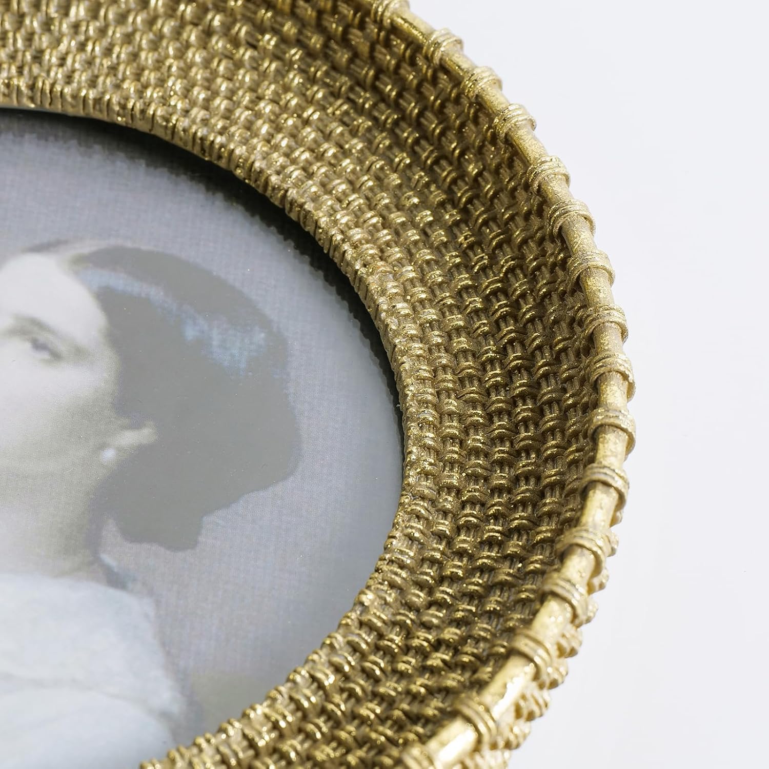 Cuspin Vintage Gold 5x5 Picture Frame, Gold Metal Rattan Textured Hand-Crafted Photo Frame with Glass Front Antique Picture Frame for Tabletop Display & Wall Display, Retro Design Home Decor