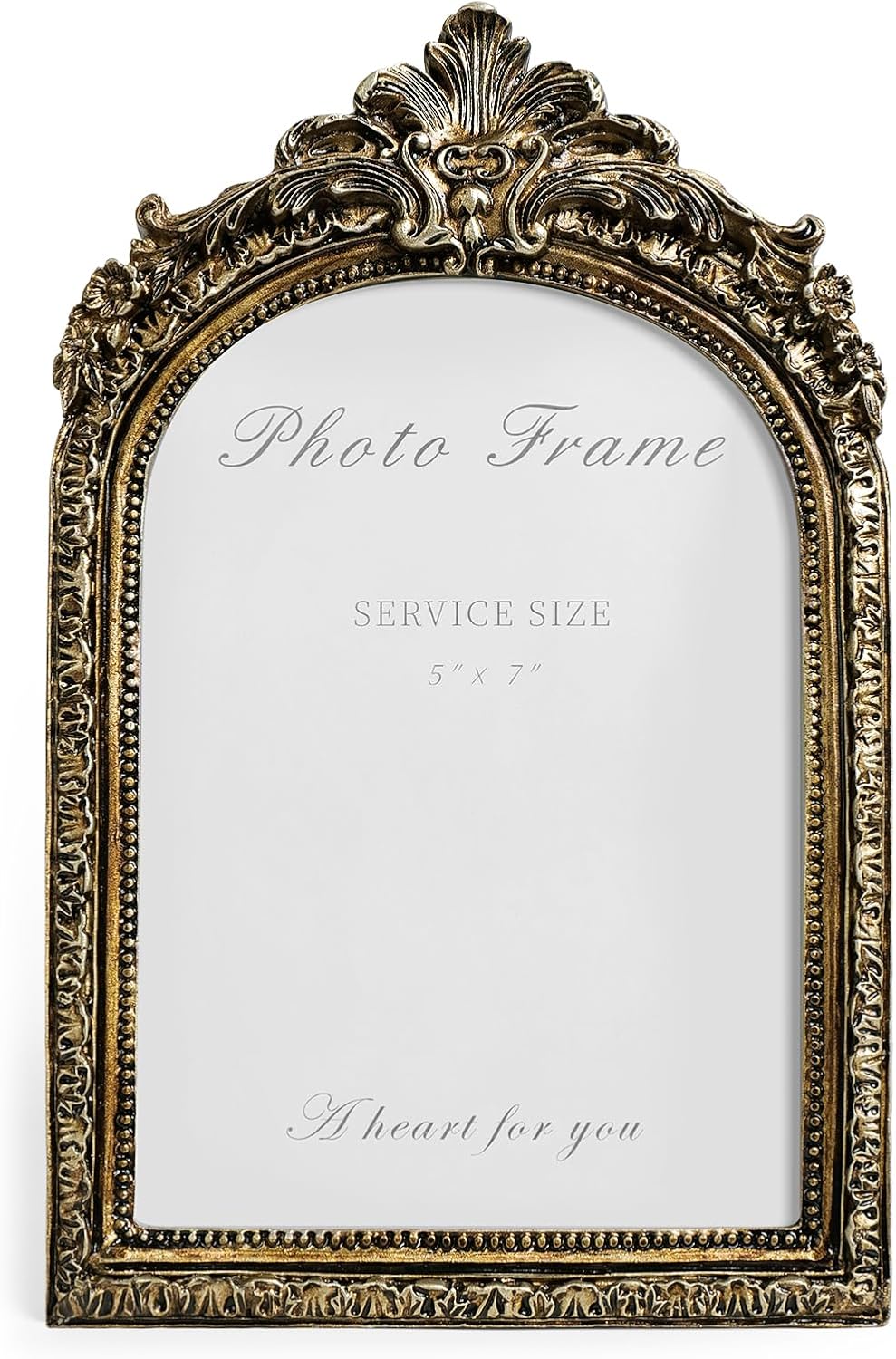 Cuspin Arched 5x7 Picture Frame Vintage Gold Frames, Bronze 5 by 7 Arched Picture Frame Hand-Crafted Resin with Glass Front Ornate Retro Antique Photo Frames for Wall and Tabletop Display Home Decor