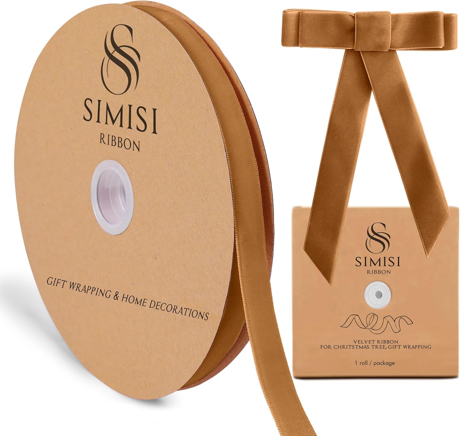 Copper Velvet Ribbon 5/8'' 25 Yards for Christmas Tree, Gift Wrapping, Flower Bouquet, Wreath Decorations, Bow Making
