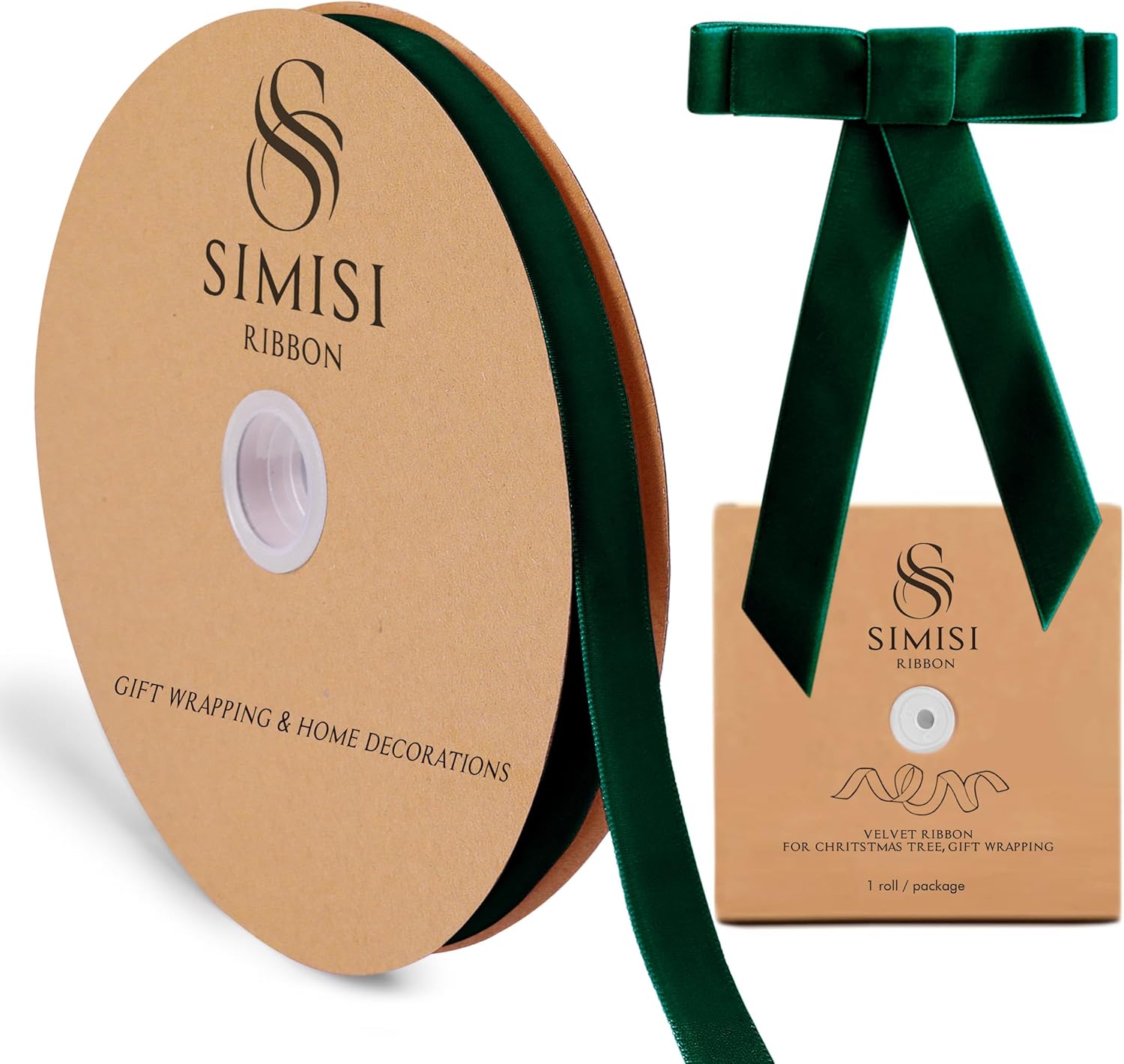 Dark Green Velvet Ribbon 5/8'' 25 Yards for Christmas Tree, Gift Wrapping, Flower Bouquet, Wreath Decorations, Bow Making