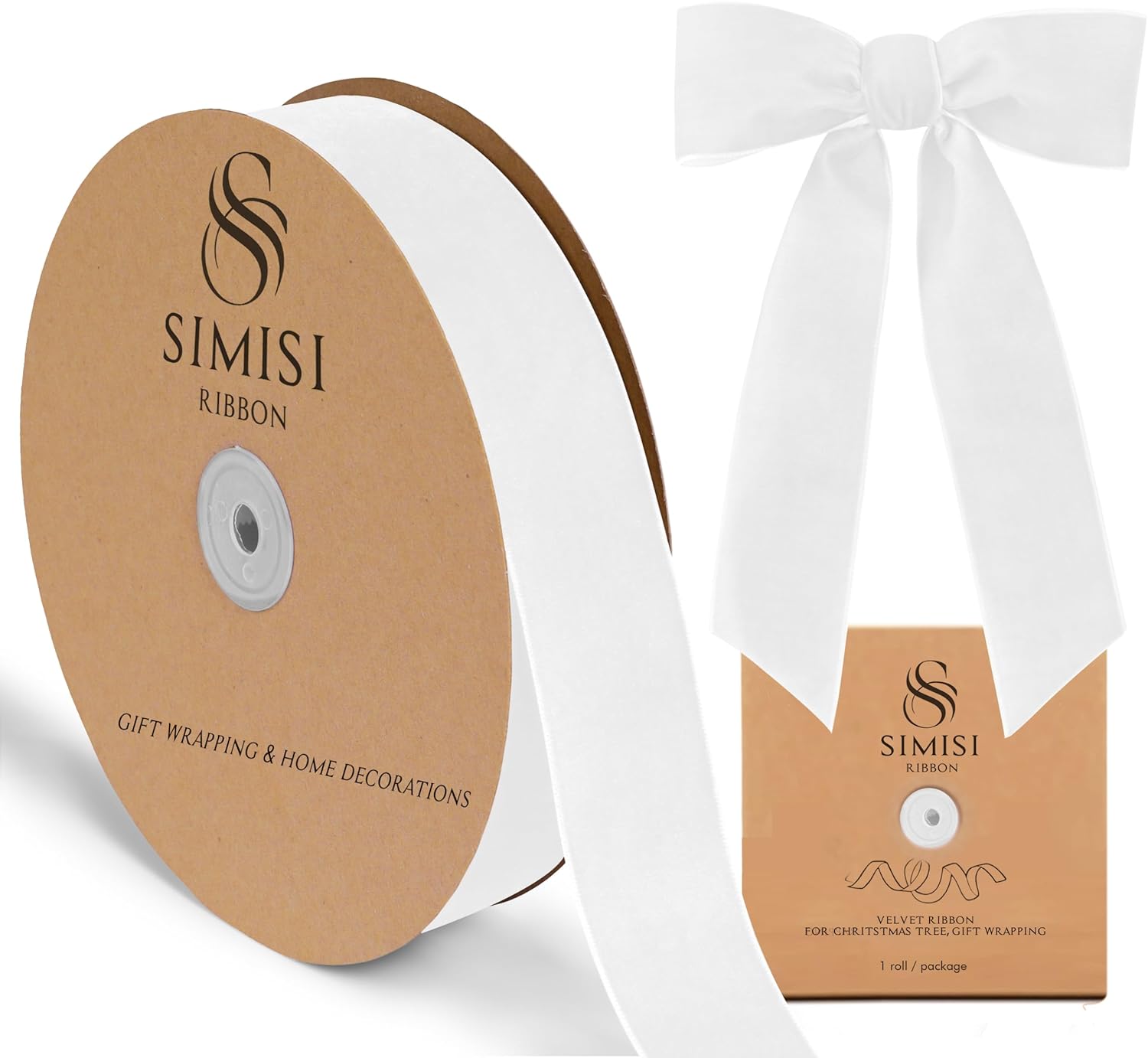 White Velvet Ribbon 1.5'' 25 Yards for Christmas Tree, Gift Wrapping, Flower Bouquet, Wreath Decorations, Bow Making