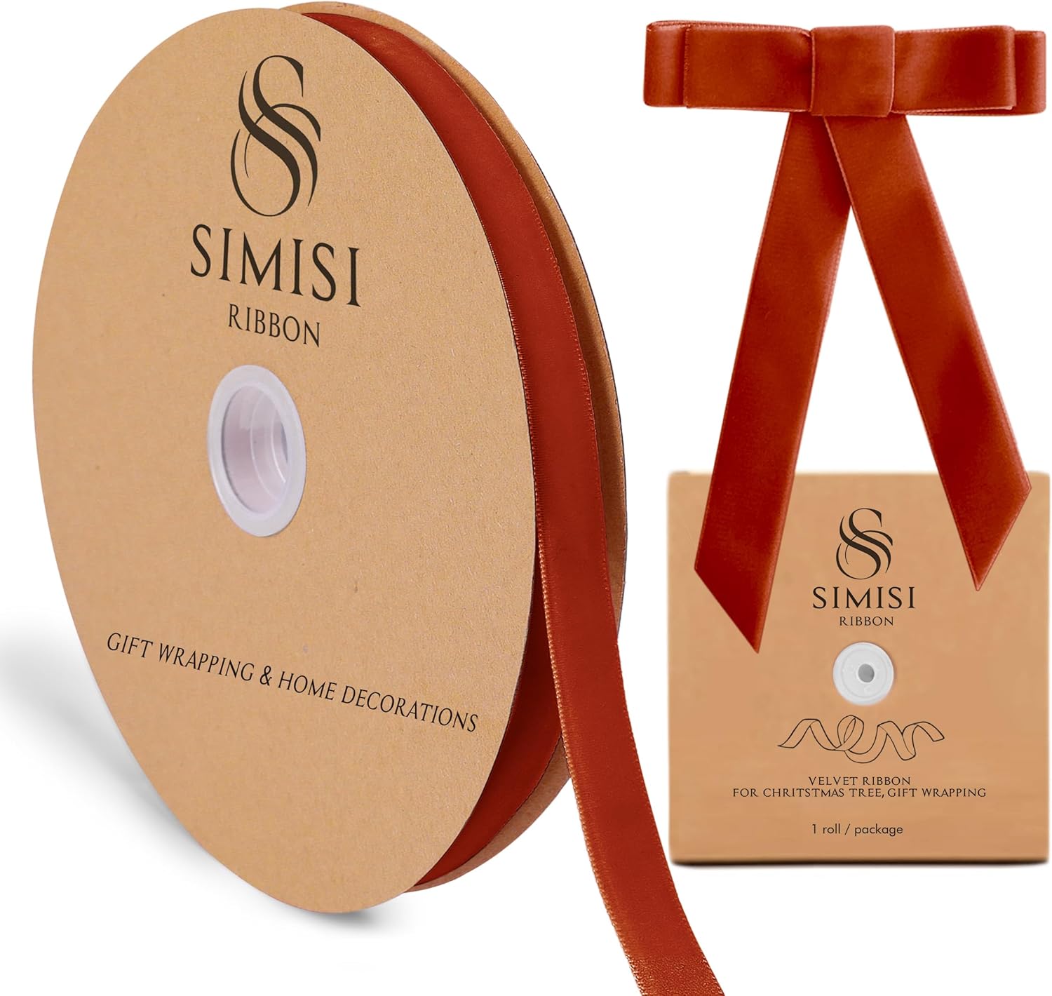 Burnt Orange Velvet Ribbon 5/8'' 25 Yards for Christmas Tree, Gift Wrapping, Flower Bouquet, Wreath Decorations, Bow Making
