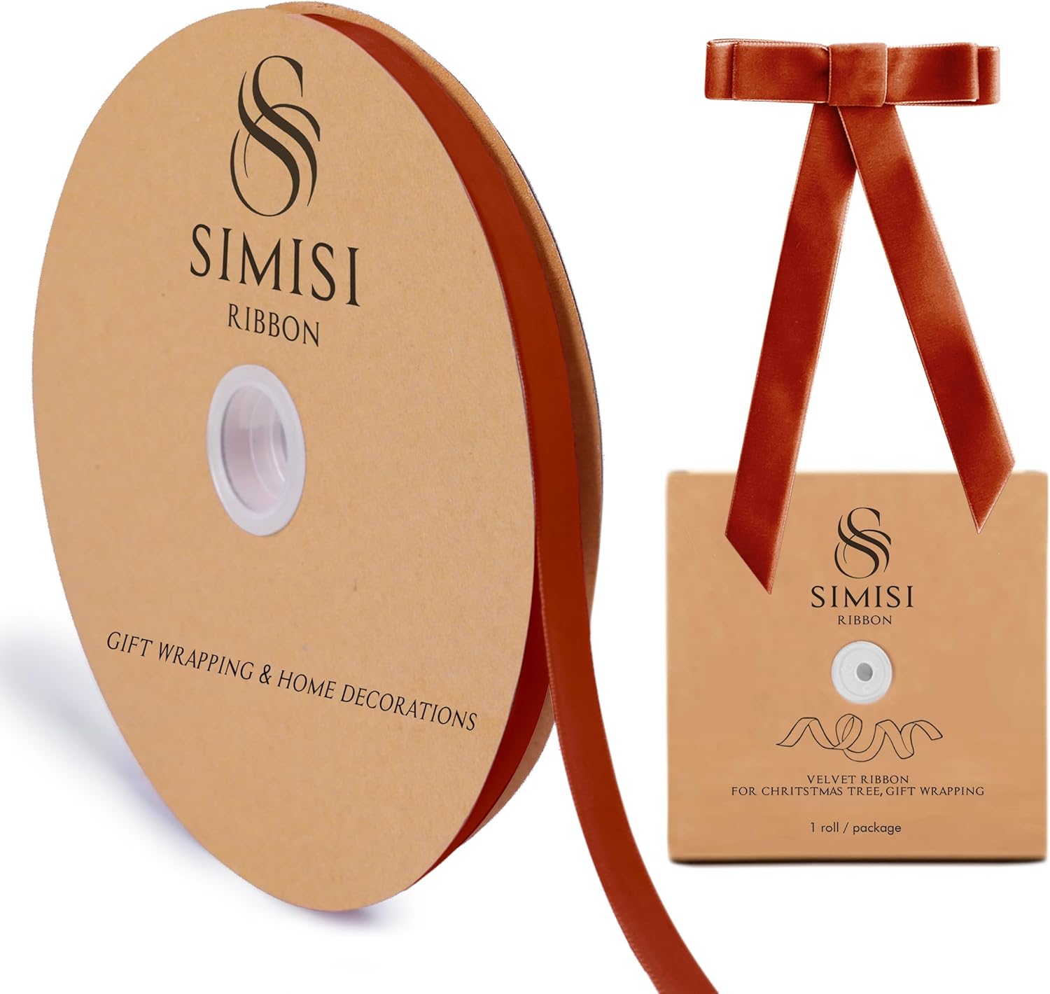 Burnt Orange Velvet Ribbon 3/8'' 25 Yards for Christmas Tree, Gift Wrapping, Flower Bouquet, Wreath Decorations, Bow Making