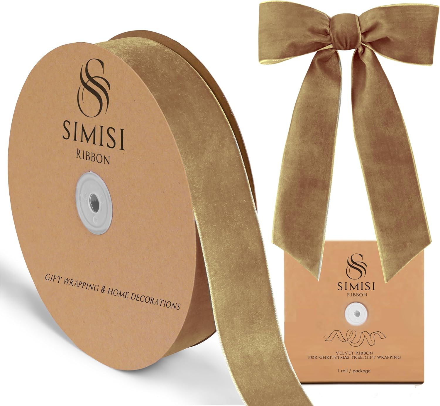 Khaki Velvet Ribbon 1.5'' 25 Yards for Christmas Tree, Gift Wrapping, Flower Bouquet, Wreath Decorations, Bow Making
