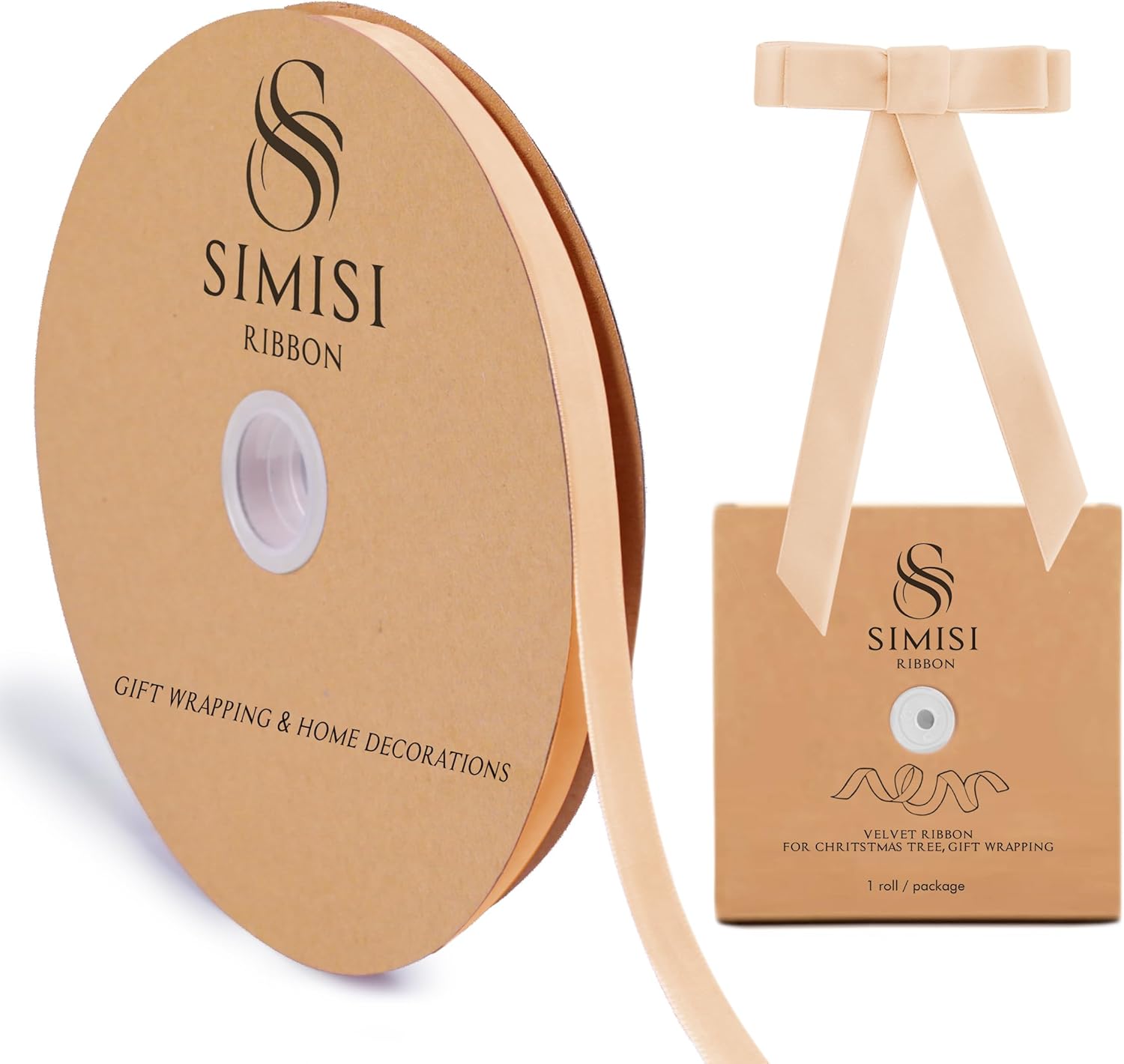 Champagne Velvet Ribbon 3/8'' 25 Yards for Christmas Tree, Gift Wrapping, Flower Bouquet, Wreath Decorations, Bow Making