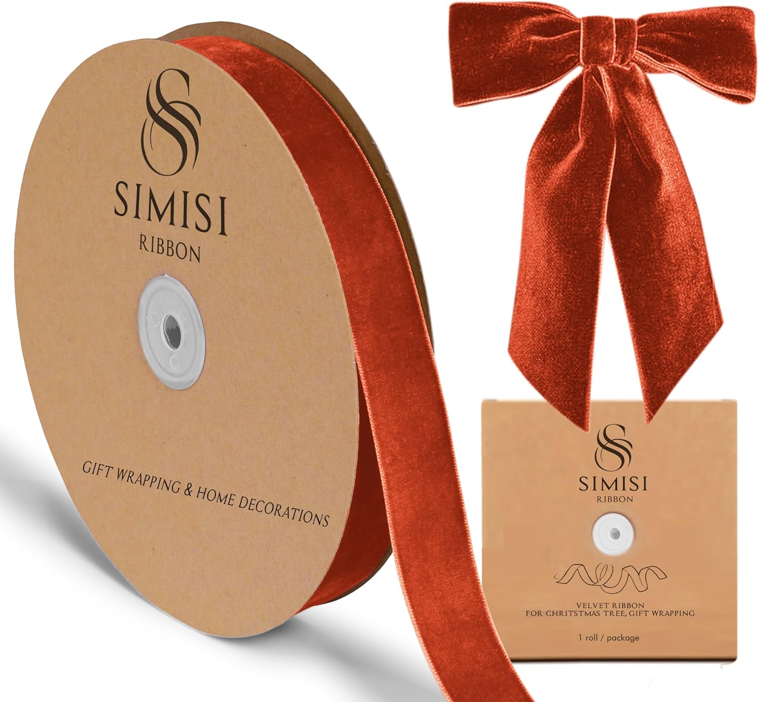 Burnt Orange Velvet Ribbon 1'' 25 Yards for Christmas Tree, Gift Wrapping, Flower Bouquet, Wreath Decorations, Bow Making