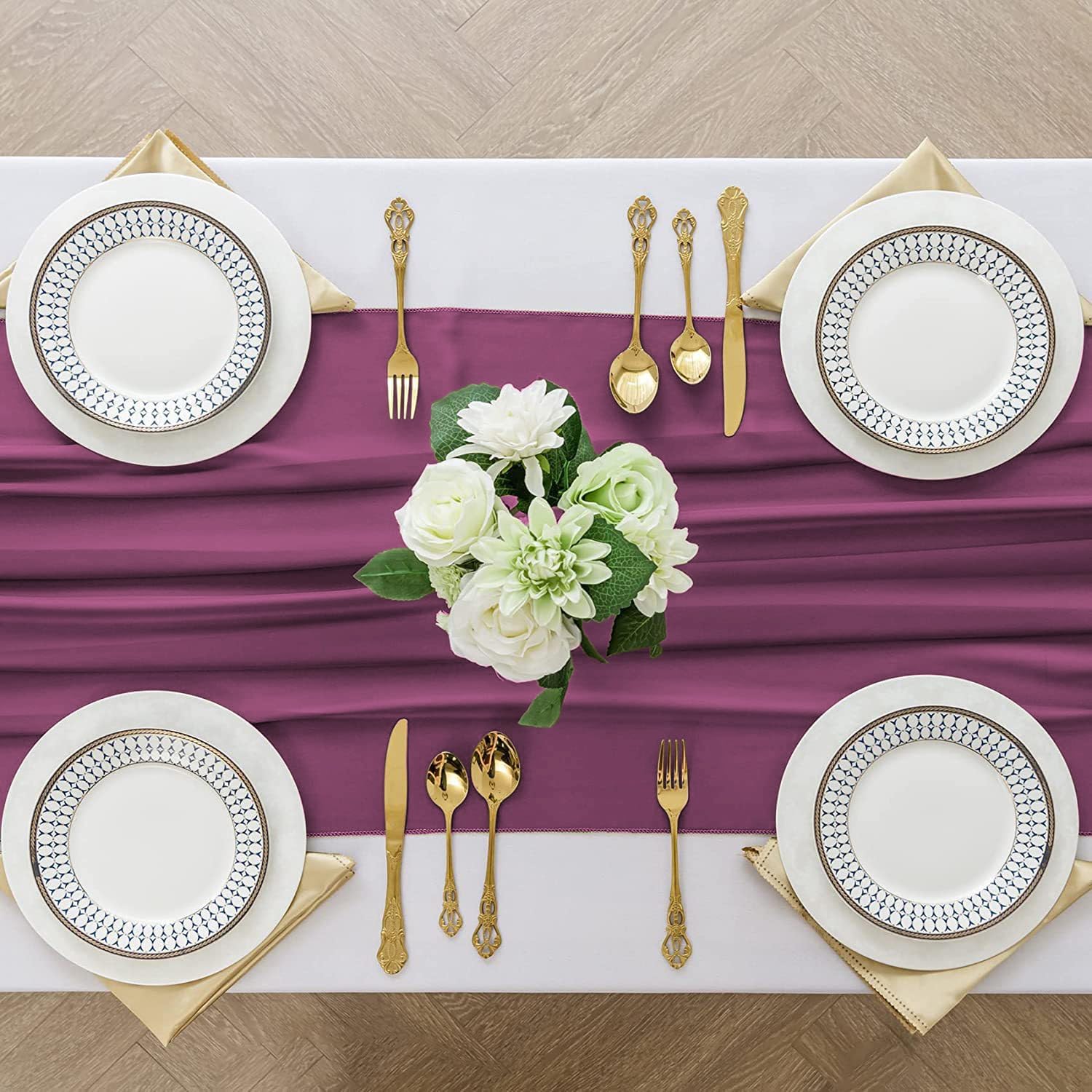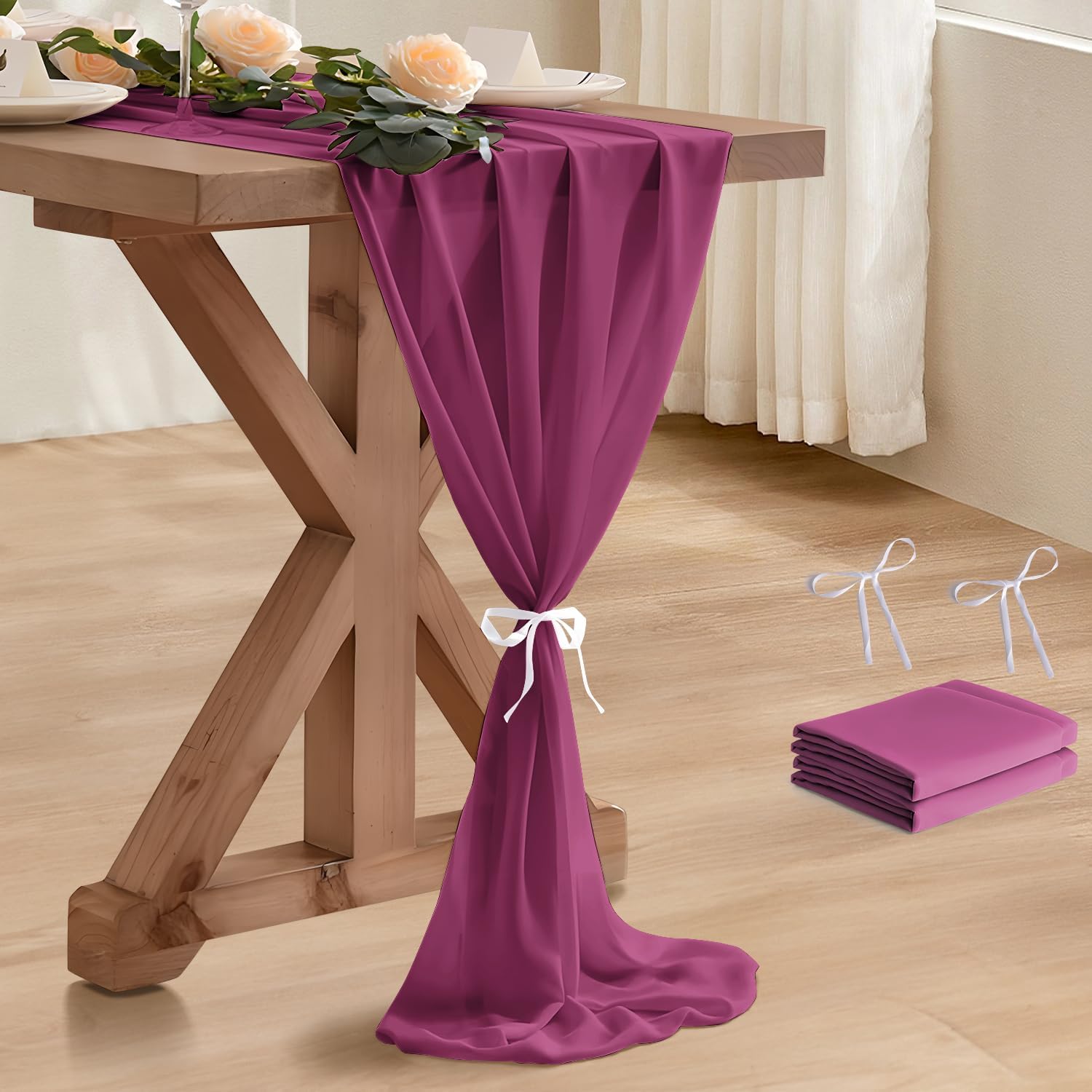 - 【Package Included】2 pcs Fuchsia chiffon table runner (27" x 120"/10ft). The design is elegant and beautiful, and the workmanship is exquisite. The table runner has a rustic and elegant look that pairs well with bohemian, farmhouse, chic, or other modern themes.
