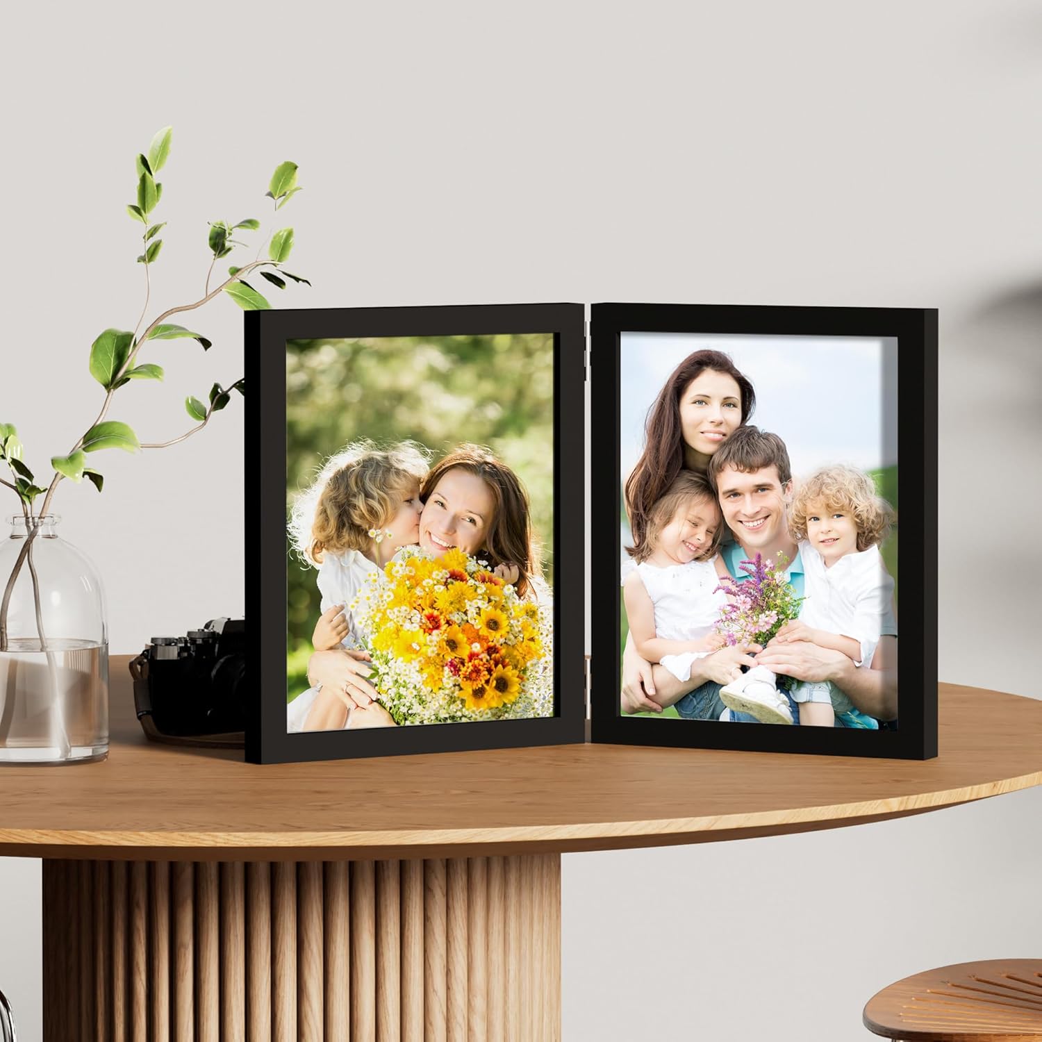 decorUhome Double 8x10 Picture Frame Vertical, Engineered Wood Bifold Photo Frame with Plexiglass for Tabletop Display, 8x10, Black