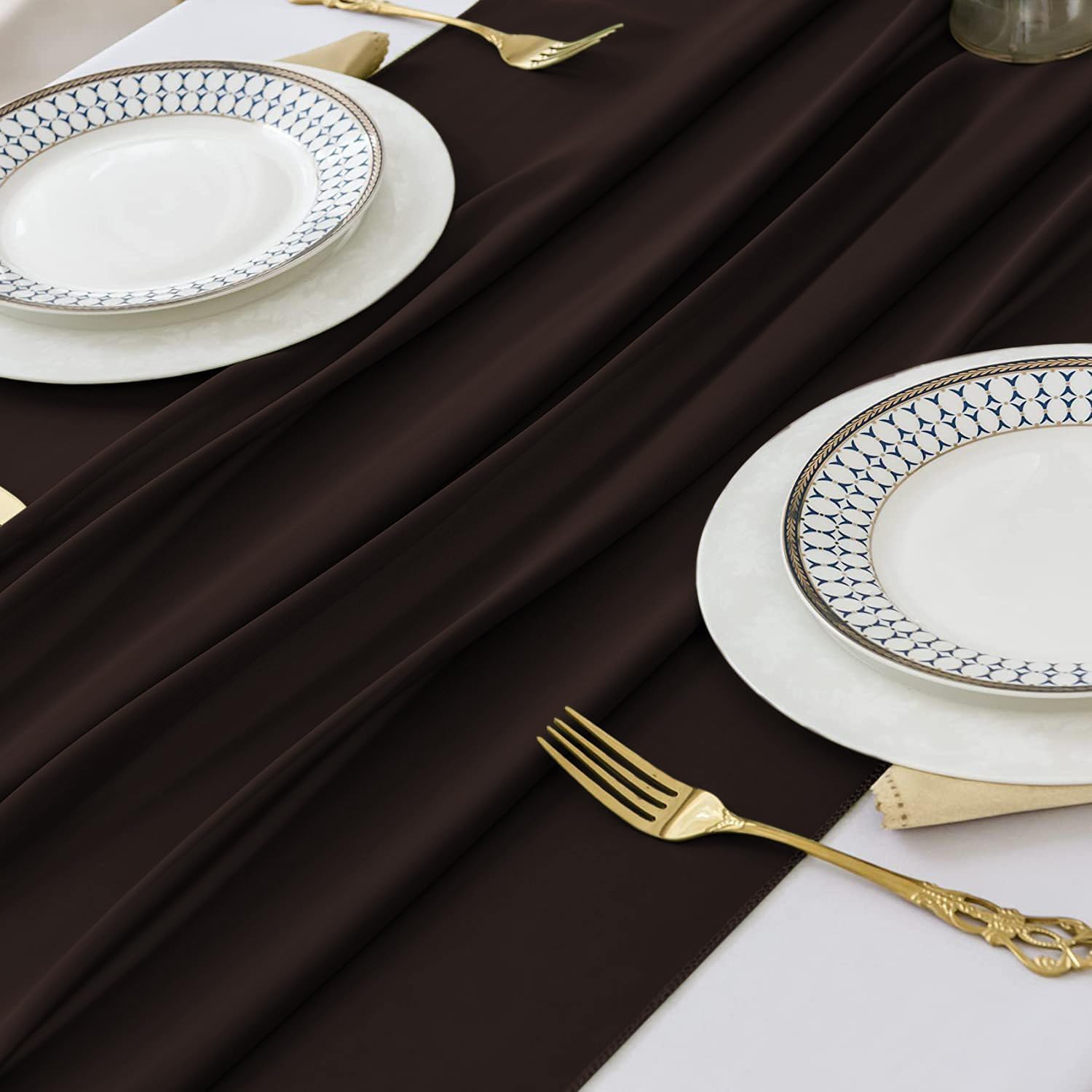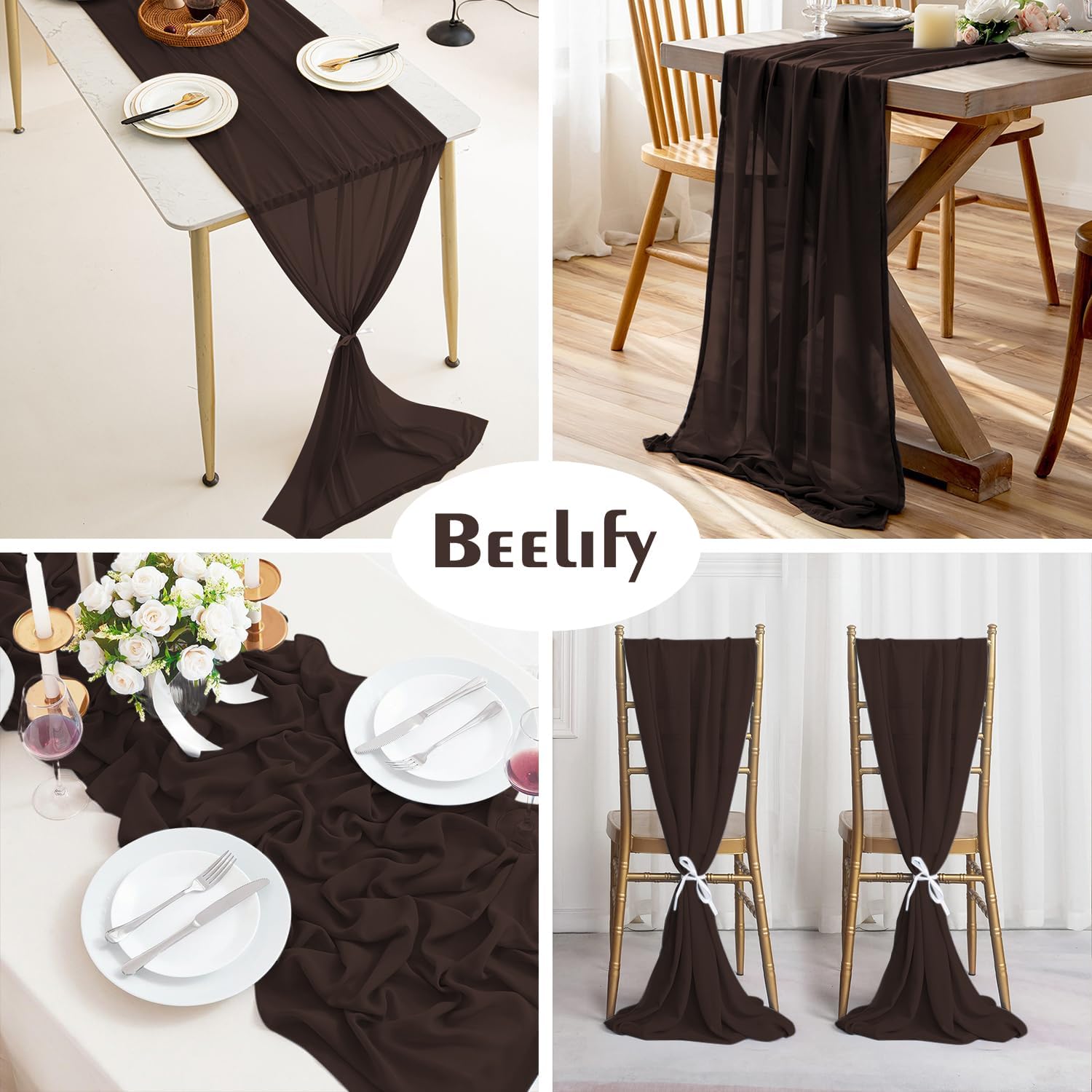 - 【Package Included】2 pcs Coffee chiffon table runner (27" x 120"/10ft). The design is elegant and beautiful, and the workmanship is exquisite. The table runner has a rustic and elegant look that pairs well with bohemian, farmhouse, chic, or other modern themes.