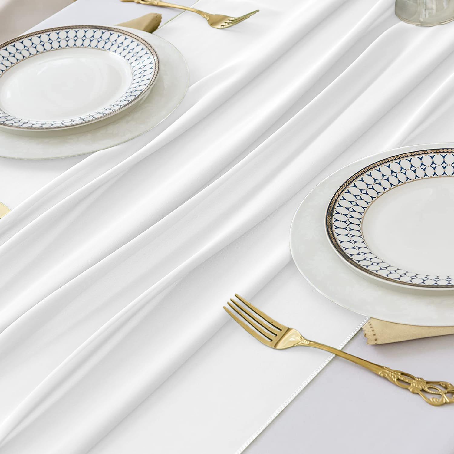 - 【Package Included】2 pcs White chiffon table runner (27" x 120"/10ft). The design is elegant and beautiful, and the workmanship is exquisite. The table runner has a rustic and elegant look that pairs well with bohemian, farmhouse, chic, or other modern themes.
