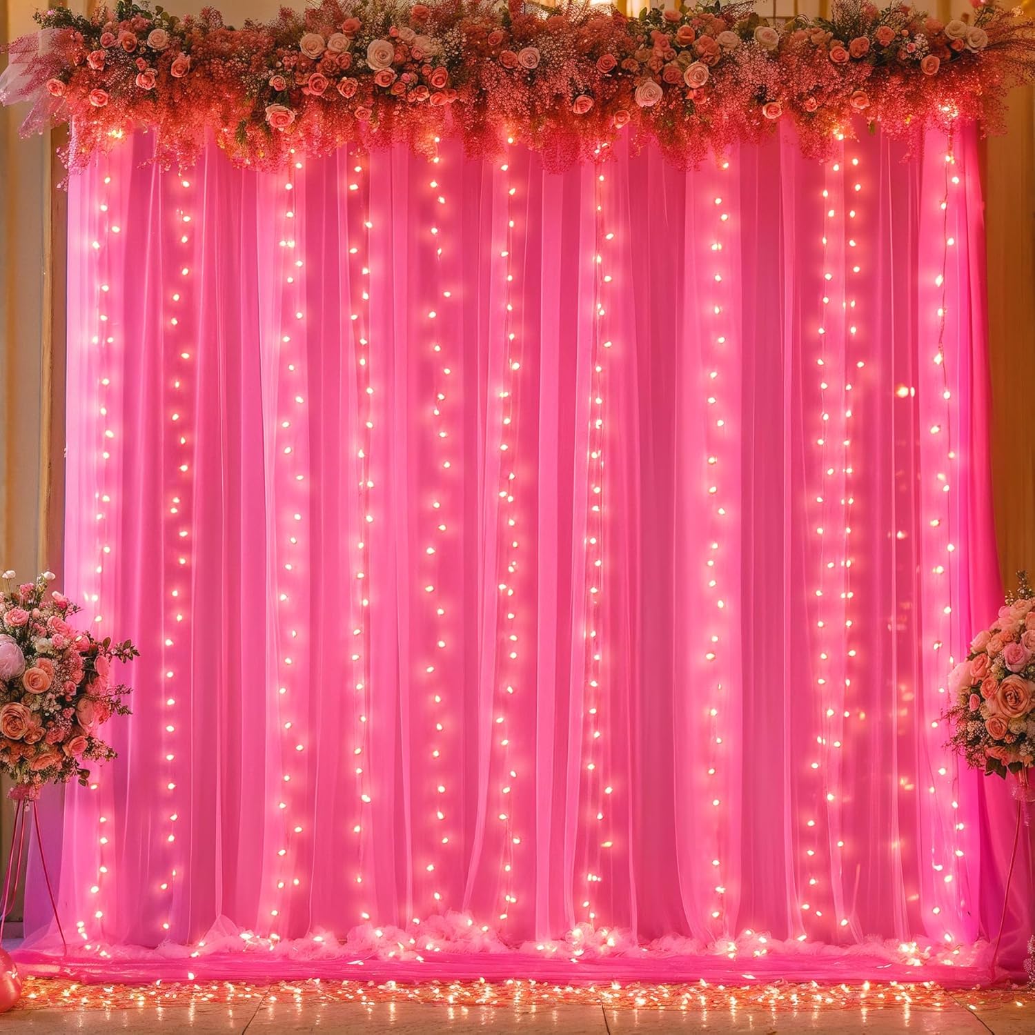 - Sheer Curtains with Lights Occasion: Hot pink backdrop curtain with lights perfect for any occasion! Perfect for marriage ceremony as a stage decoration, wedding reception, birthday party, baby shower, bridal shower, graduation, wedding photo booth props, proms, Christmas photoshoot and photography background wall decorations.Can be reused in multiple occasions.