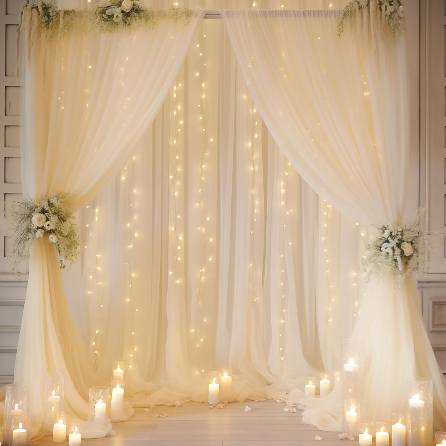 - Multipurpose: These sheer backdrop curtains with lights are applicable for any indoor and outdoor occasion either for decorative or functional uses: weddings arch, receptions, parties, bridal and baby showers, birthdays, candy buffets, dessert tables background, trade shows, wedding stages photography, photo booths, ceremony and more