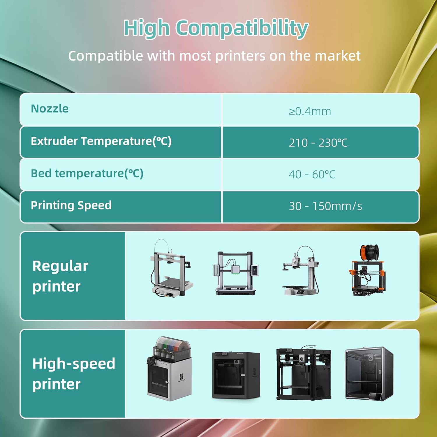 - 【After-sale service】All spools are vacuum-packed, which protects filament from moisture and dust. If you are in a humid environment, drying before use will ensure optimal printing results. In case of any quality problem, please feel free to contact us for after-sales service.