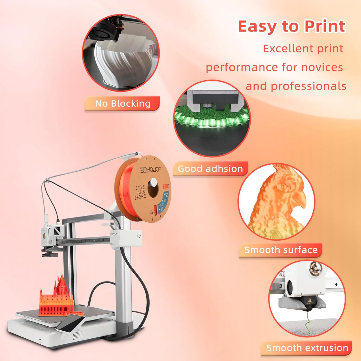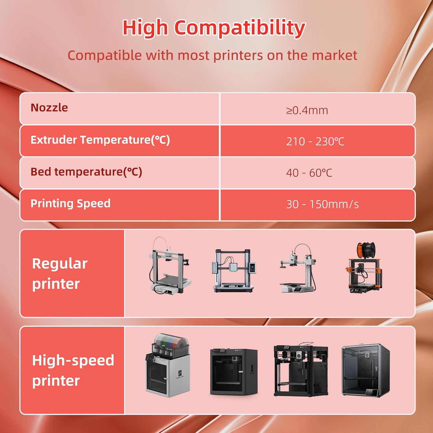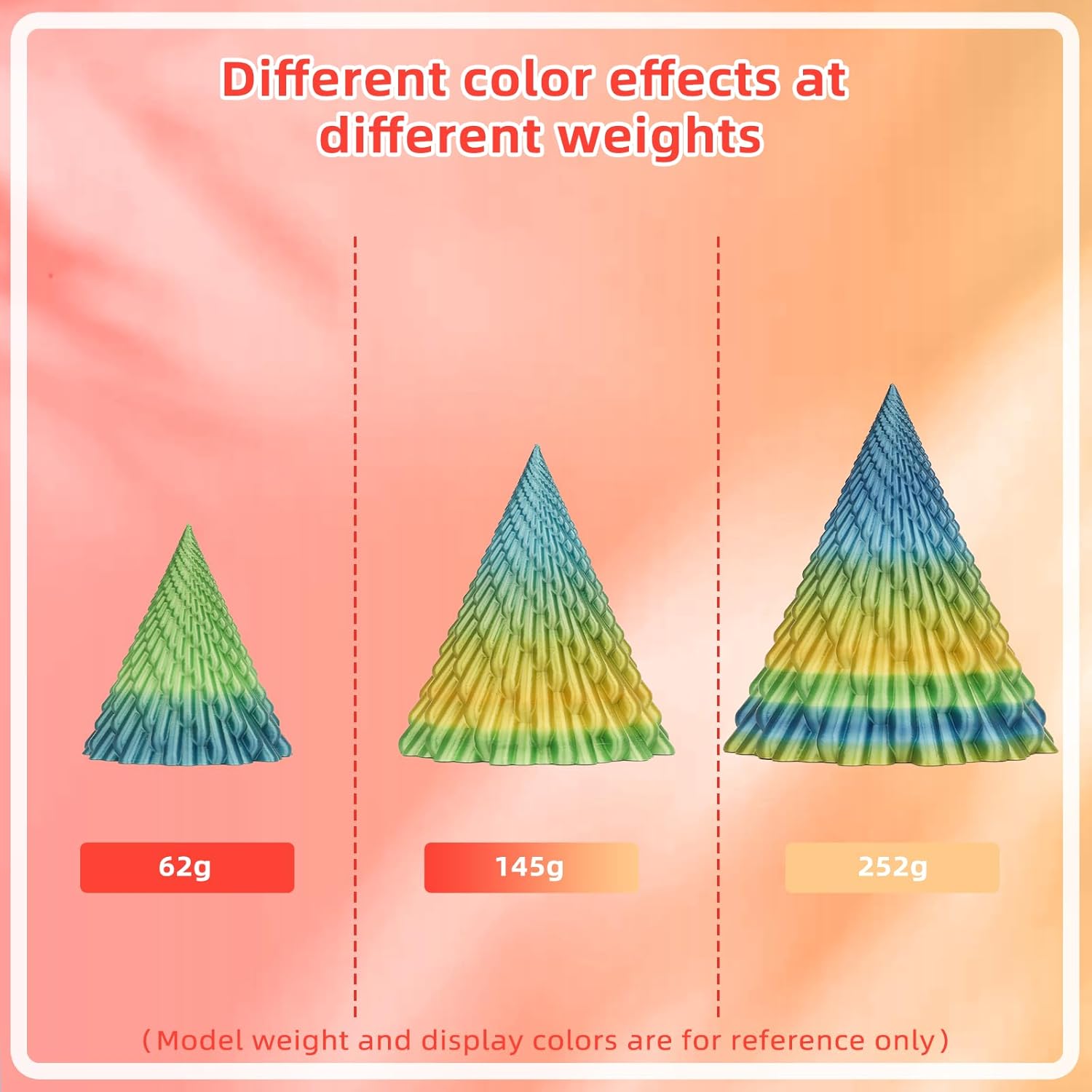 - 【Rainbow PLA filament 】Color changing every 15 meter with rich and natural gradient color change. You can printout 3D items smooth,multi-colored, even intricate. Only need to print small models to show all the colors. Fiery Rose color consists of silk red, orange, gold