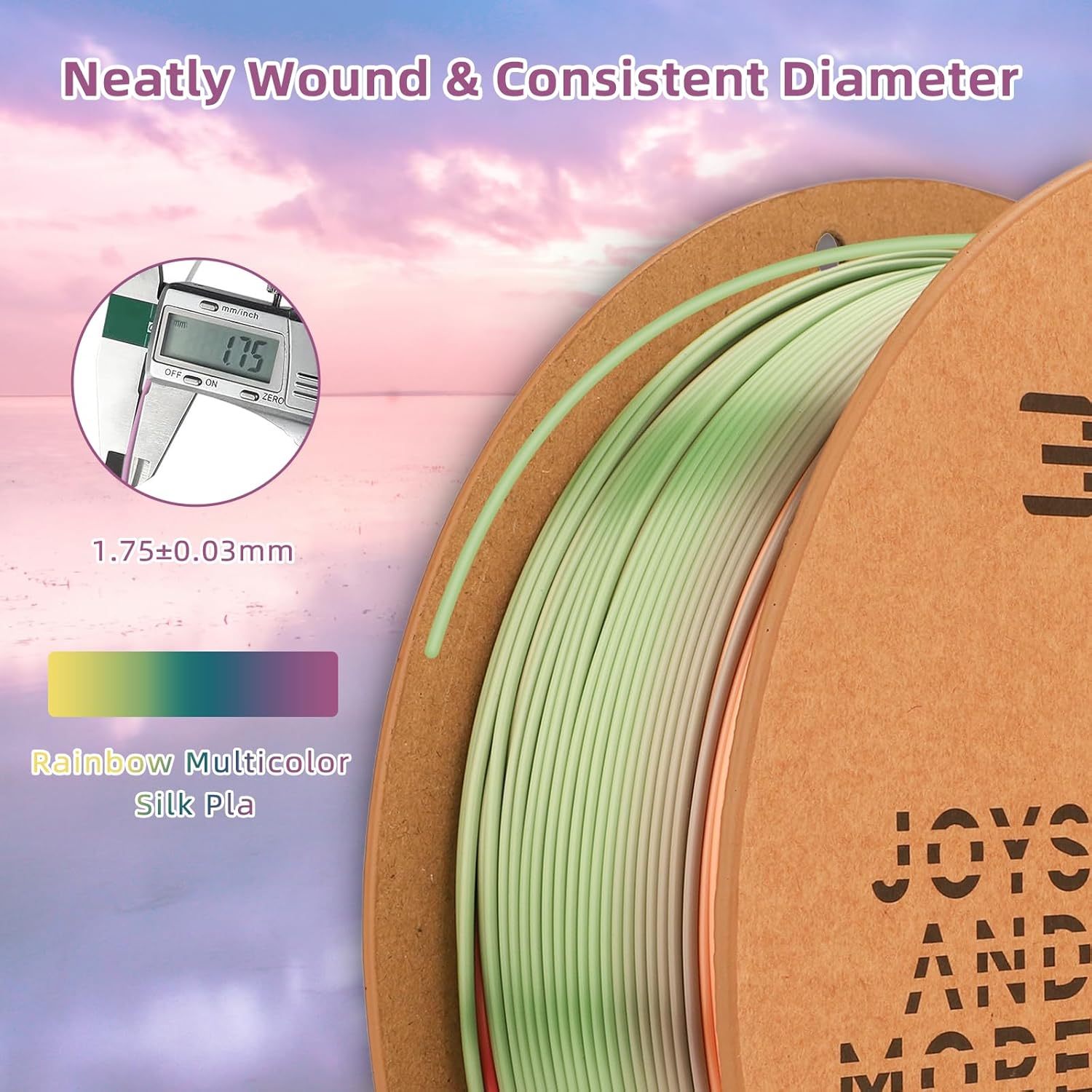 - 【Easy to print】3DHojor multicolor silk pla filament has excellent performance. Low shrinkage, higher fluidity Solve the problem of warping and blistering, improve the print quality. Melt well and feed smoothly, no bubble, no jamming, no warping and easy to print.