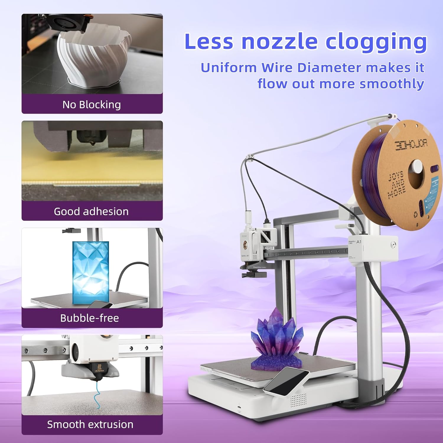 - Rainbow color pla has good surface finish, no bubble, no warping and easy to print. It has good fluidity and can be firmly adhered to the baseboard without worrying about falling off. We believe that both beginners and professionals can find the joy of 3D printing with us.