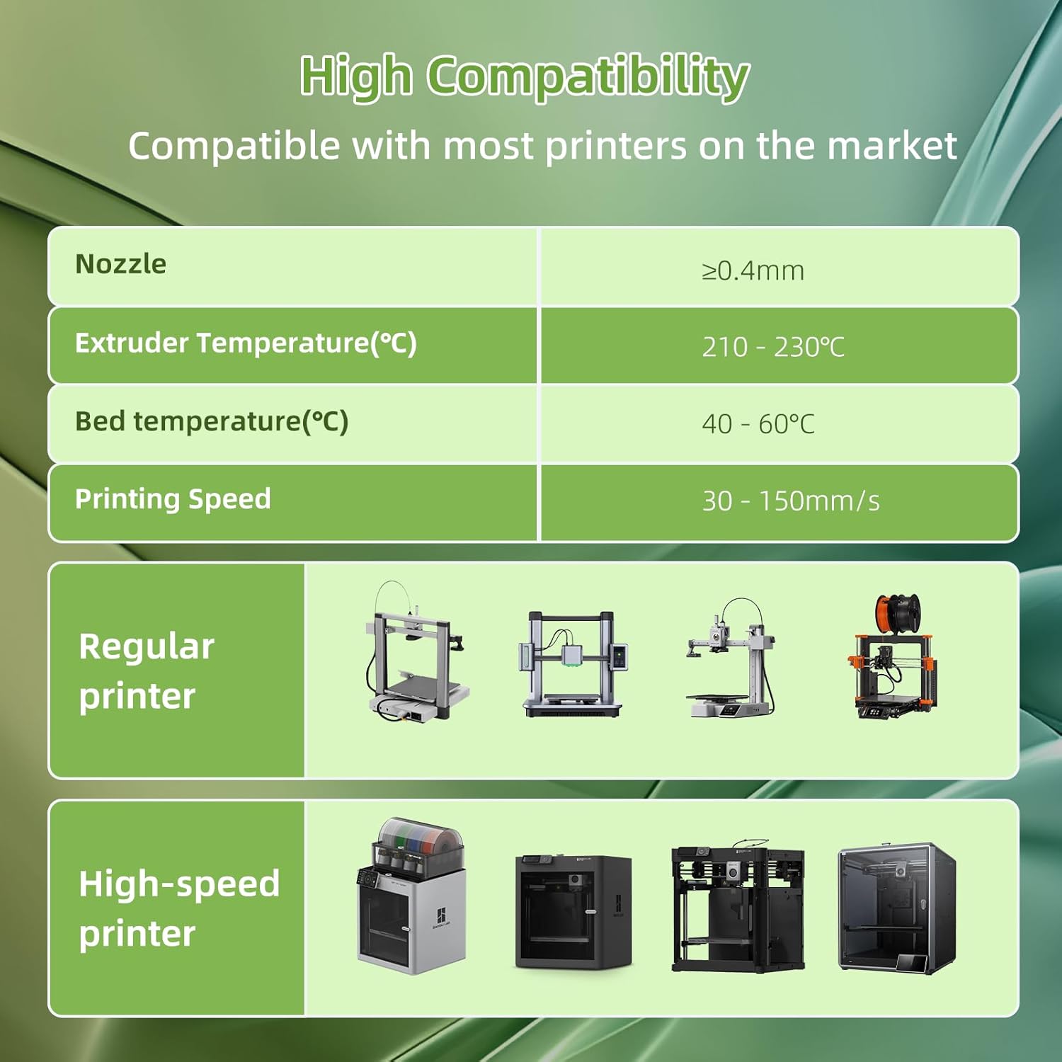 - 【After-sale service】All spools are vacuum-packed, which protects filament from moisture and dust. If you are in a humid environment, drying before use will ensure optimal printing results. In case of any quality problem, please feel free to contact us for after-sales service.
