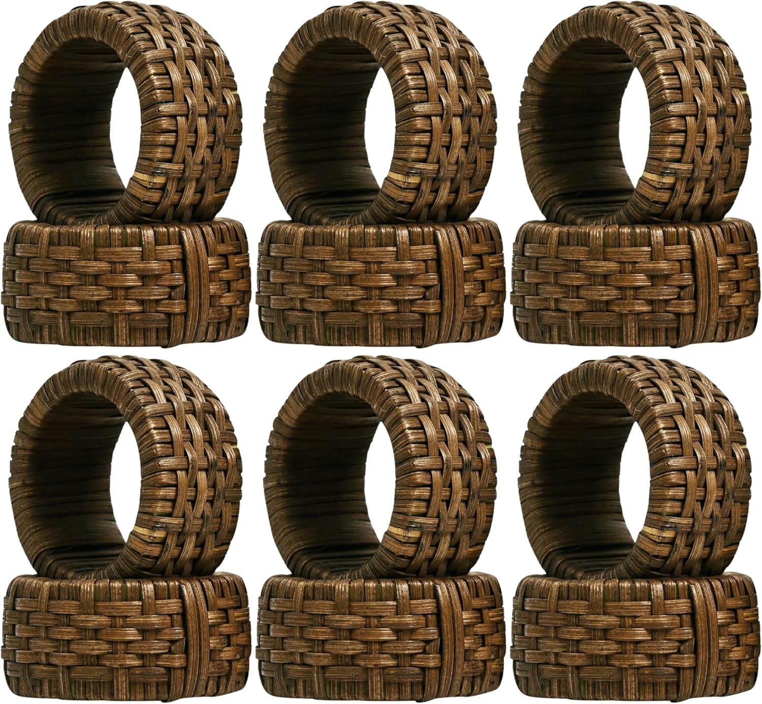 Decorative Cane Napkin Rings Set of 12 - Hand Woven Napkin Holders for Farmhouse, Rustic, Holiday, Wedding, Easter, Thanksgiving, Xmas, Boho & Fall Table Décor (Walnut) - CLEENTABLE