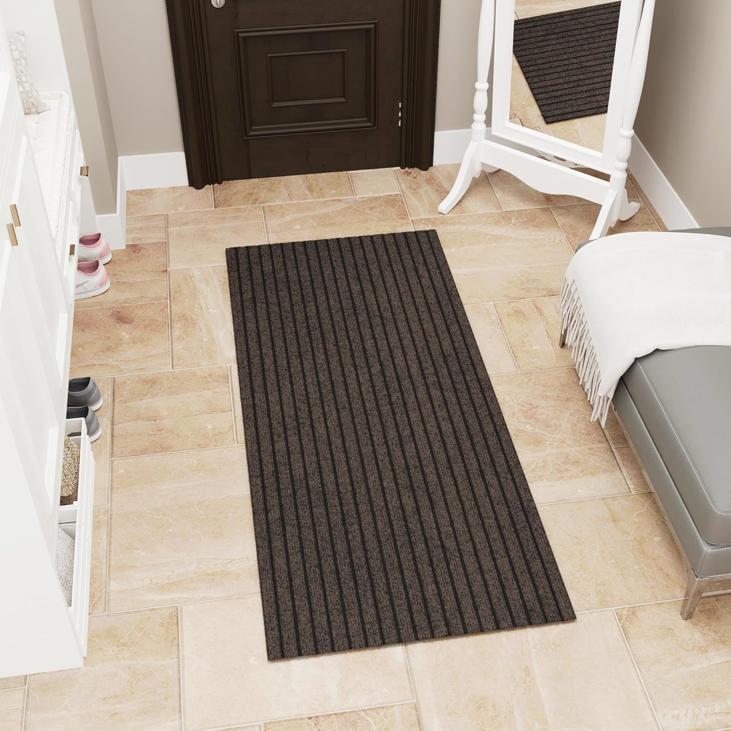 Ottomanson 2' x 5' Hallway Runner with Scraper Pile Extra Durable Non-Slip Rug Mat for Indoor & Outdoor Use - Ideal for Kitchen, Entryway, Patio & Garage - High-Traffic Carpet, Brown