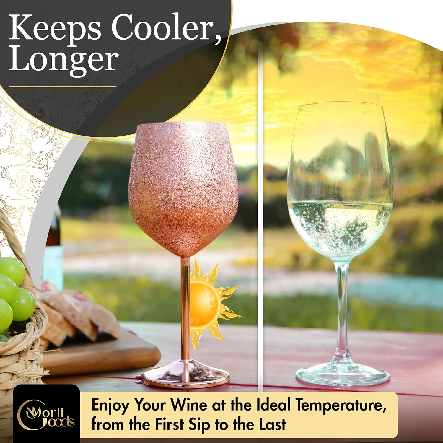 - KEEPS WINE COLDER LONGER - Enjoy your wine at the perfect temperature for extended periods. The stainless steel wine glasses keep your wine colder for longer, enhancing your drinking experience.