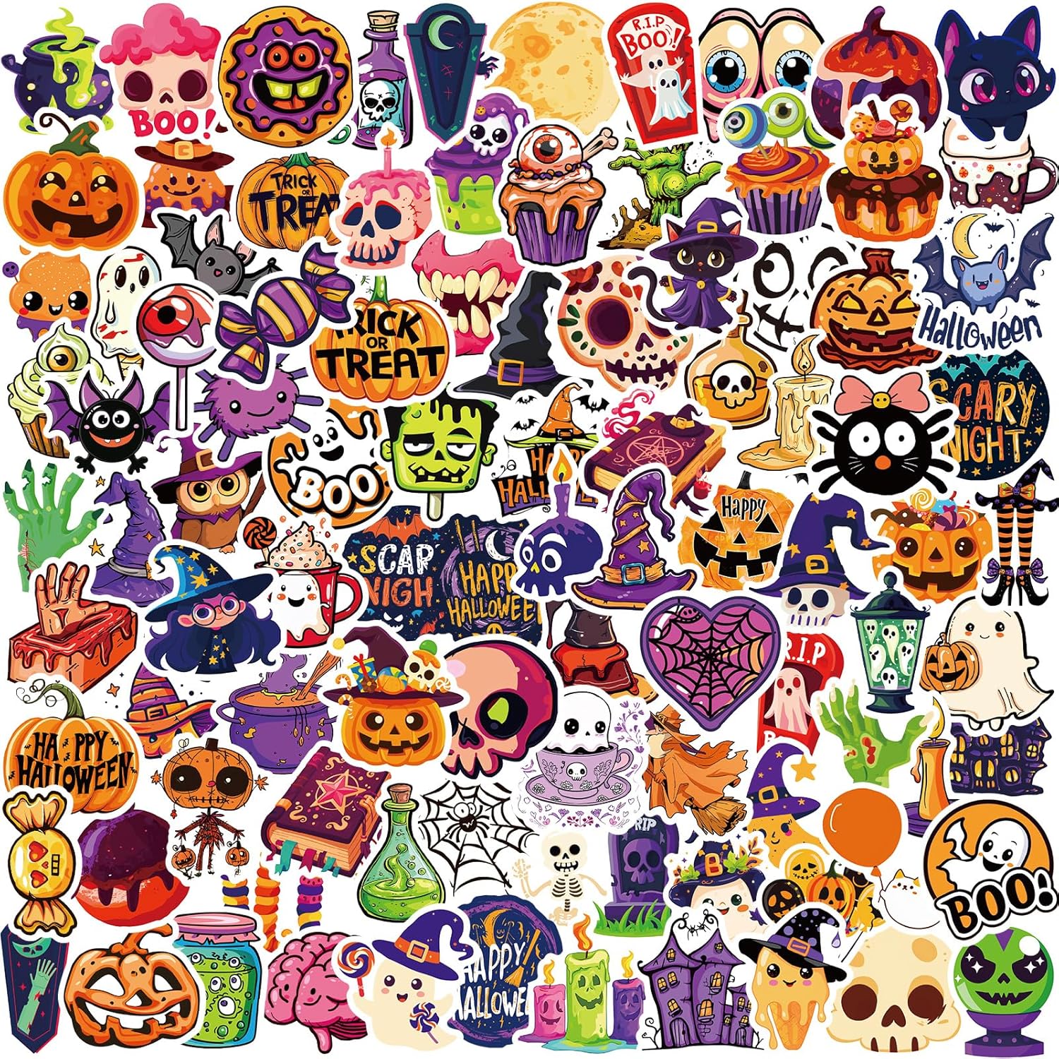 XZENTIRA, 100 PCS Halloween Stickers for Kids Teens Adults, Halloween Cartoon Pumpkin Themed Stickers, Vinyl Waterproof Holiday Party Stickers, Halloween Holiday Party Favors Gifts