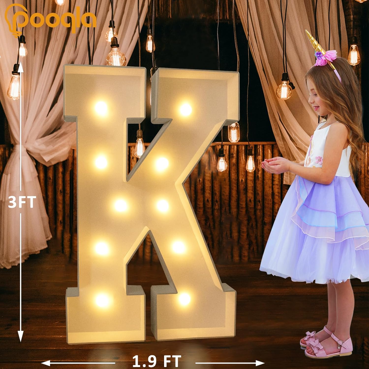 Pooqla 3FT Light Up Marquee Letters, Cool White and Warm White LED Large Lighted Marquee Letters, Giant Mosaic Letter Sign for Balloons Birthday Anniversary Wedding Party Decoration, LED Letter K