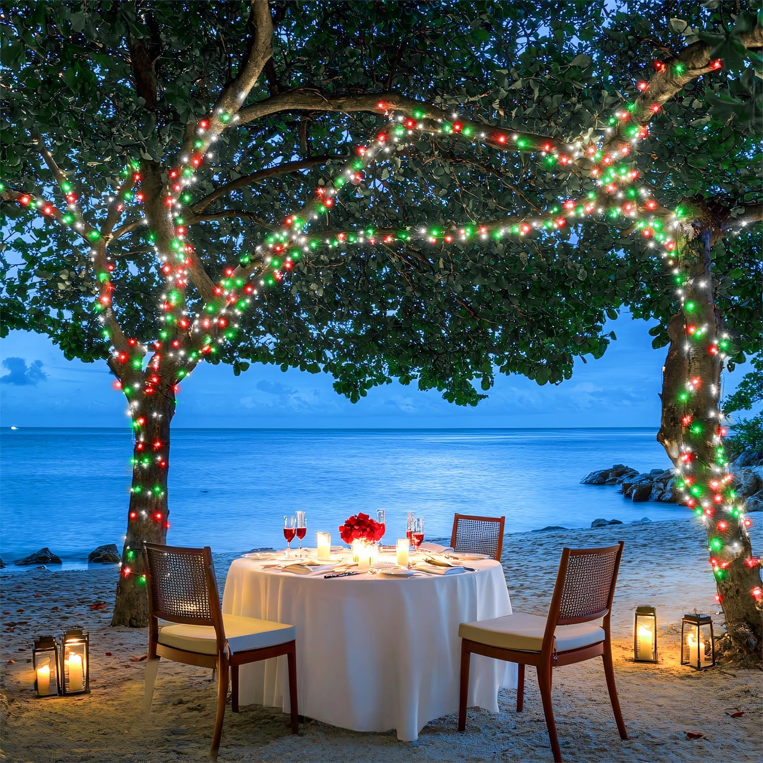- 【500 LEDs Red White and Green Christmas Lights】The 163 ft long light has 500 super quality LEDs that emit a steady and soft glow. At Christmas, these outdoor Christmas lights are long enough to be made into garden deers and can also be wrapped around a 7ft Christmas tree, thus creating a festive Christmas atmosphere. Christmas tree lights can easily add a pure and holy atmosphere, it is also a wonderful choice for wedding or party decoration.
