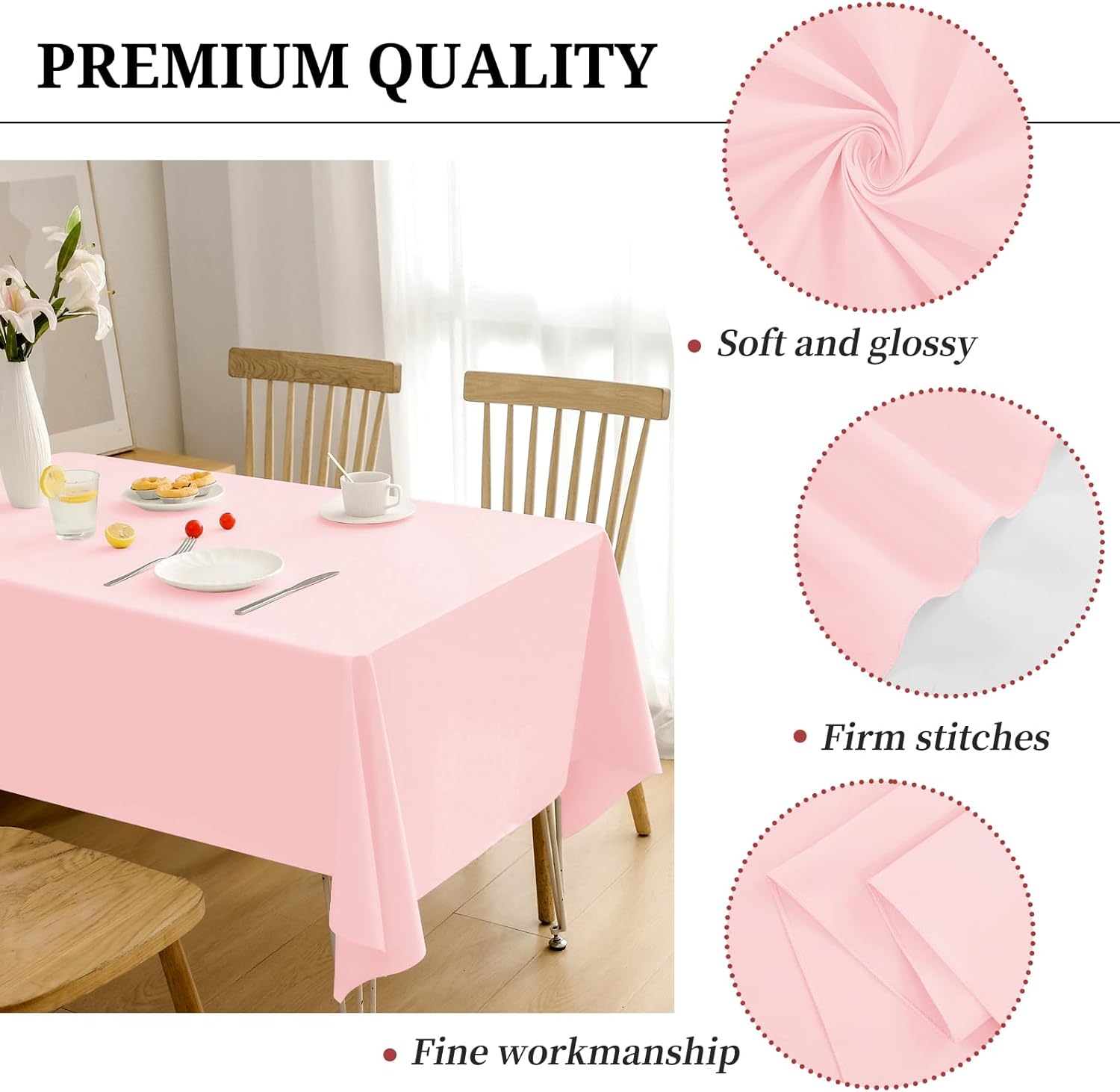 - 【Package Include】You will receive 12 packs of 60x102 Inch pink rectangle polyester tablecloths, perfect for standard 6ft table, providing 15 inch drop. The product comes individually packaged in a re-sealable storage bag. Pink tablecover is more luxurious, classic and gracious, ideal for both formal & casual settings and makes a great gift for all occasions. Protect your table from scratch,stains and sun rays while decorate your table. Quality of 12 packs is sufficient for your needs.