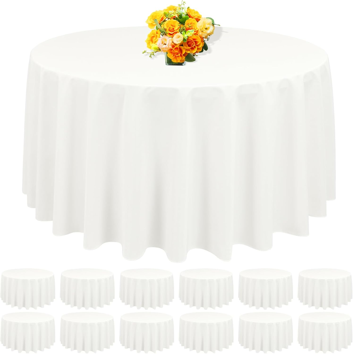- 【Package Include】You will receive 12 packs of 90 inch ivory round polyester tablecloths,this 90 inch ivory round tablecloth is Ideal for standard 6FT(72") round tables, providing a 9" drop, or 15" drop if your round table is 5FT (60"). The product comes individually packaged in a re-sealable storage bag. Ivory tablecover is more luxurious, classic and gracious.