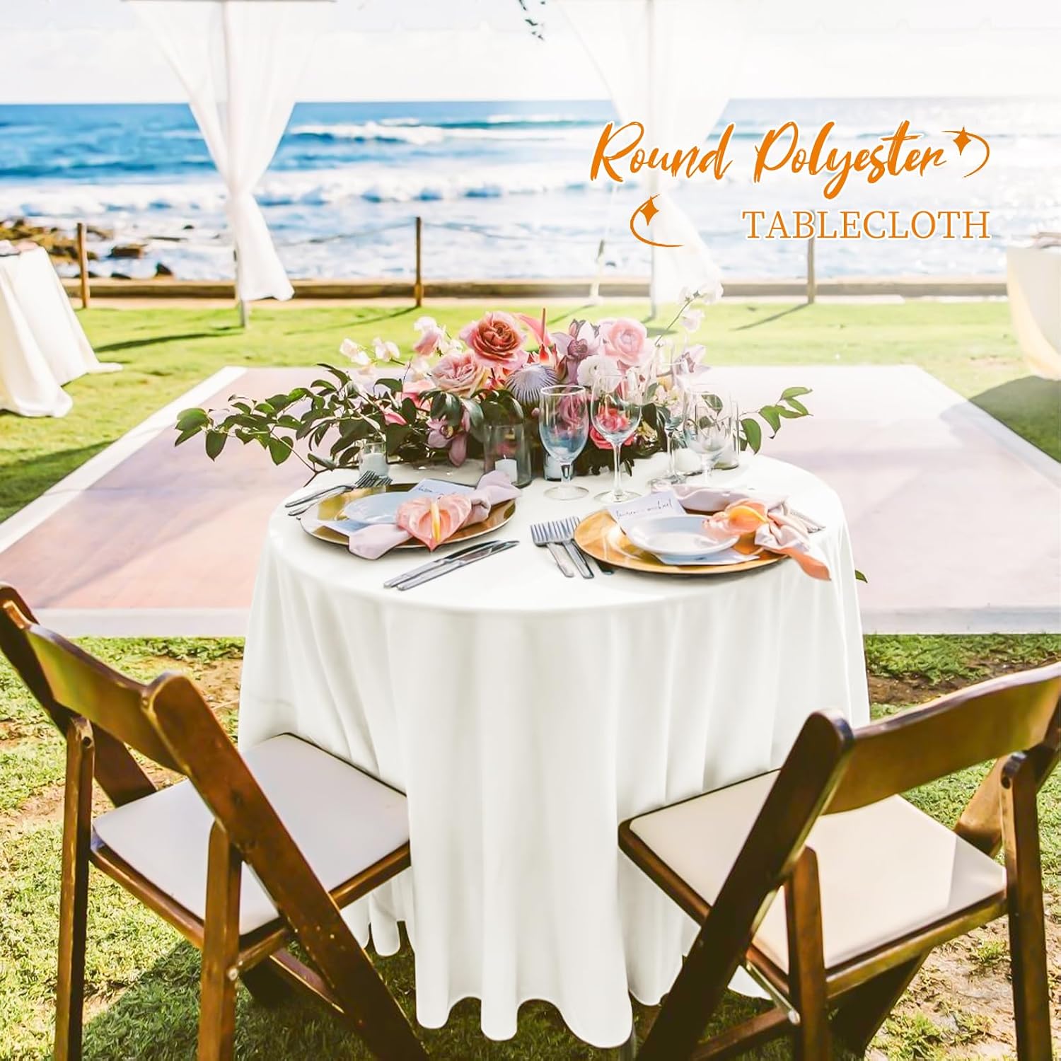 - 【Premium Tablecloth Fabrics】The round table cloth is made of polyester, which is waterproof, stain and wrinkle resistant, soft to the touch and delicately sewn on the edges. Polyester round table cloths are easy to care for, durable, can be washed and used over and over again, and work better after low temperature ironing. Polyester tablecloths can effectively protect your dining table and also serve as a decoration. Upgrade your special moment and daily life with an exquisite taste.