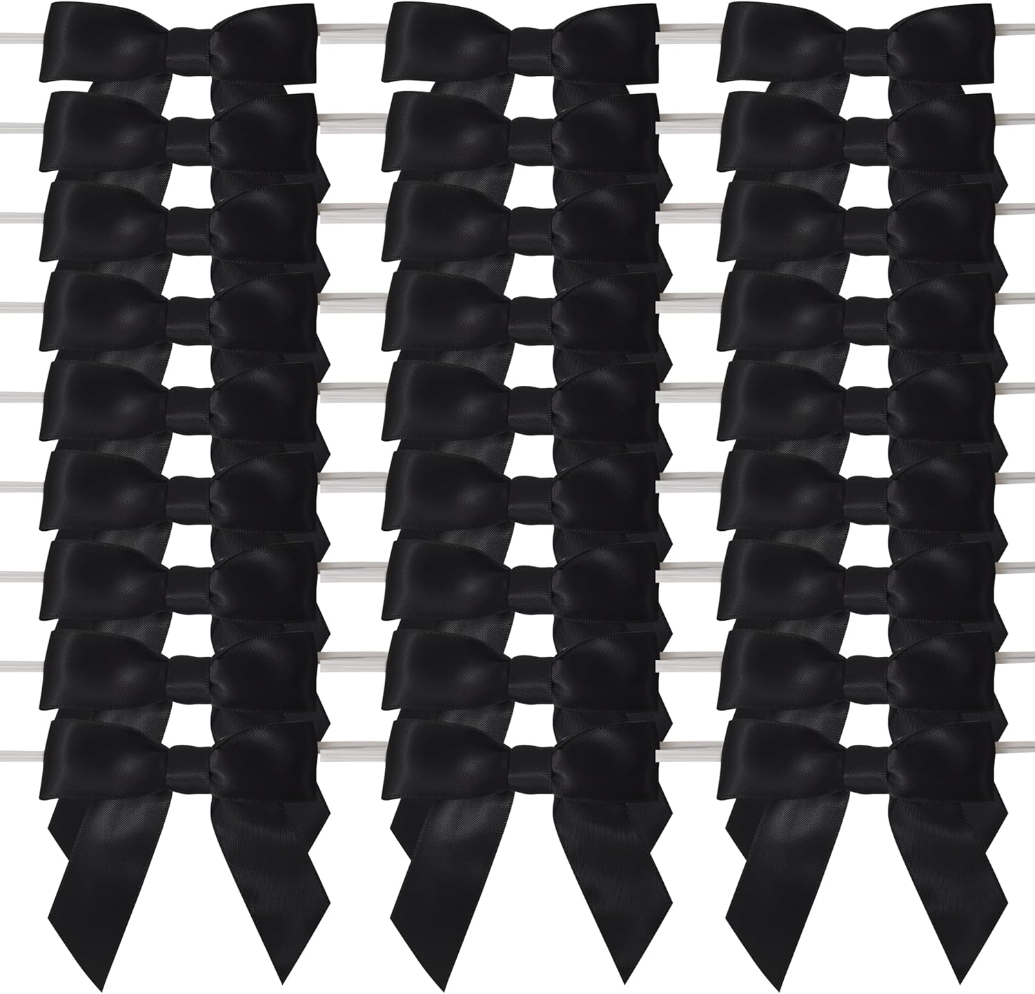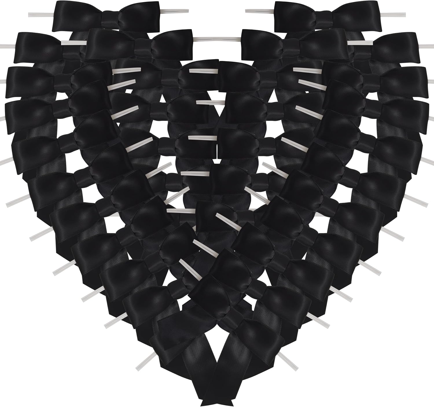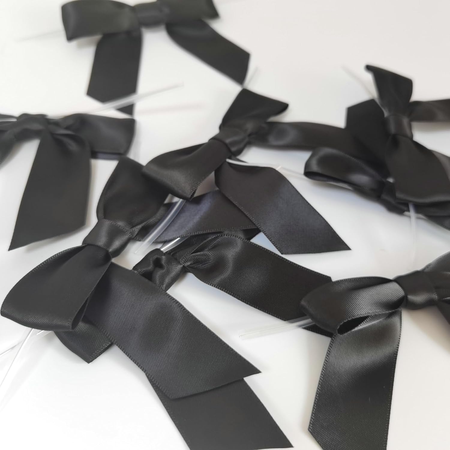 50pcs 3-1/2" Black Satin Ribbon Bows with Twist Ties Giant Bows for Fathers' Day 7th of July Gift Packing&Wrapping (Black)