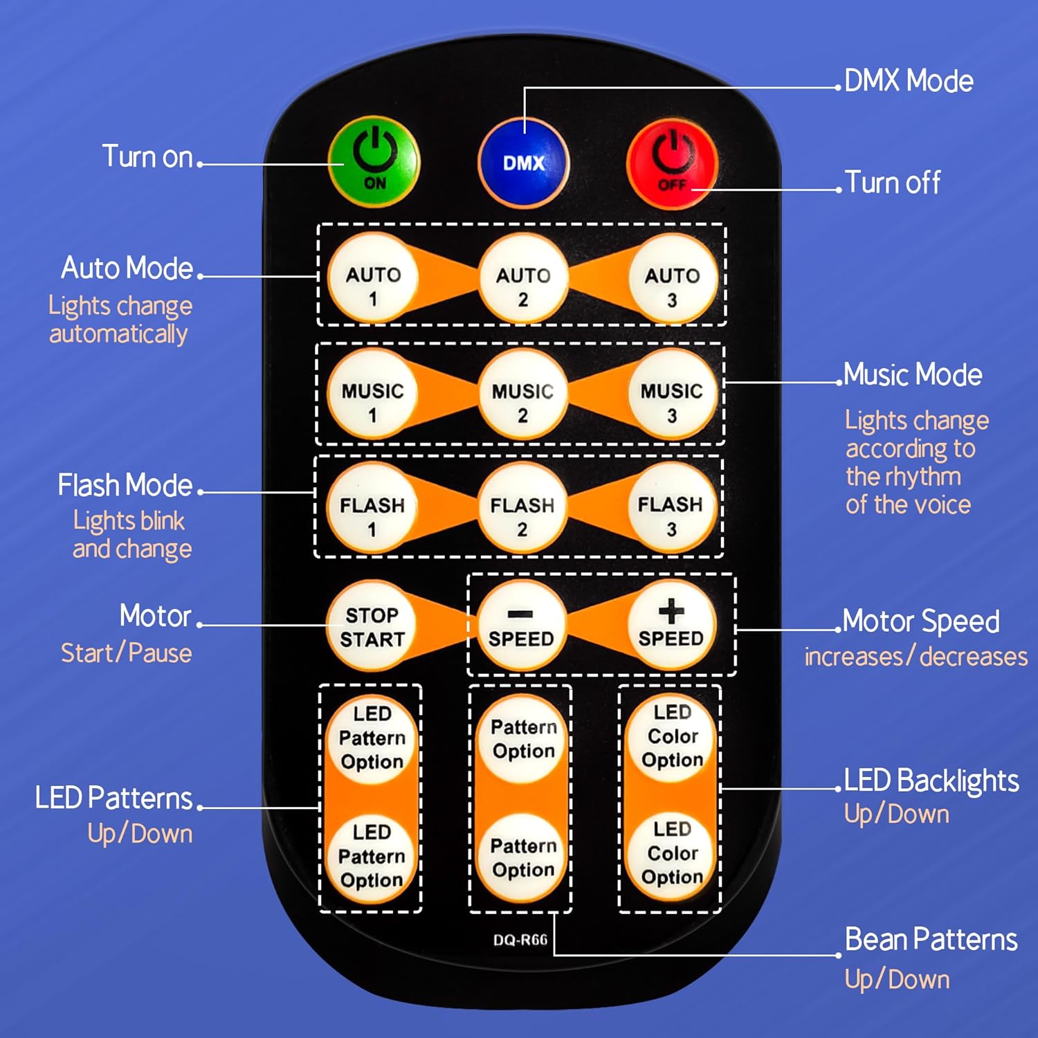 - 【Convenient Control Methods】 Take full control with ease using our convenient control options: a compact remote control, DMX 512 interface, or simple push-button operation. Explore mesmerizing light patterns that rotate and transition gracefully, adding a touch of sophistication to any venue. Our compact design conceals a powerhouse of capabilities, surprising even the most discerning users.