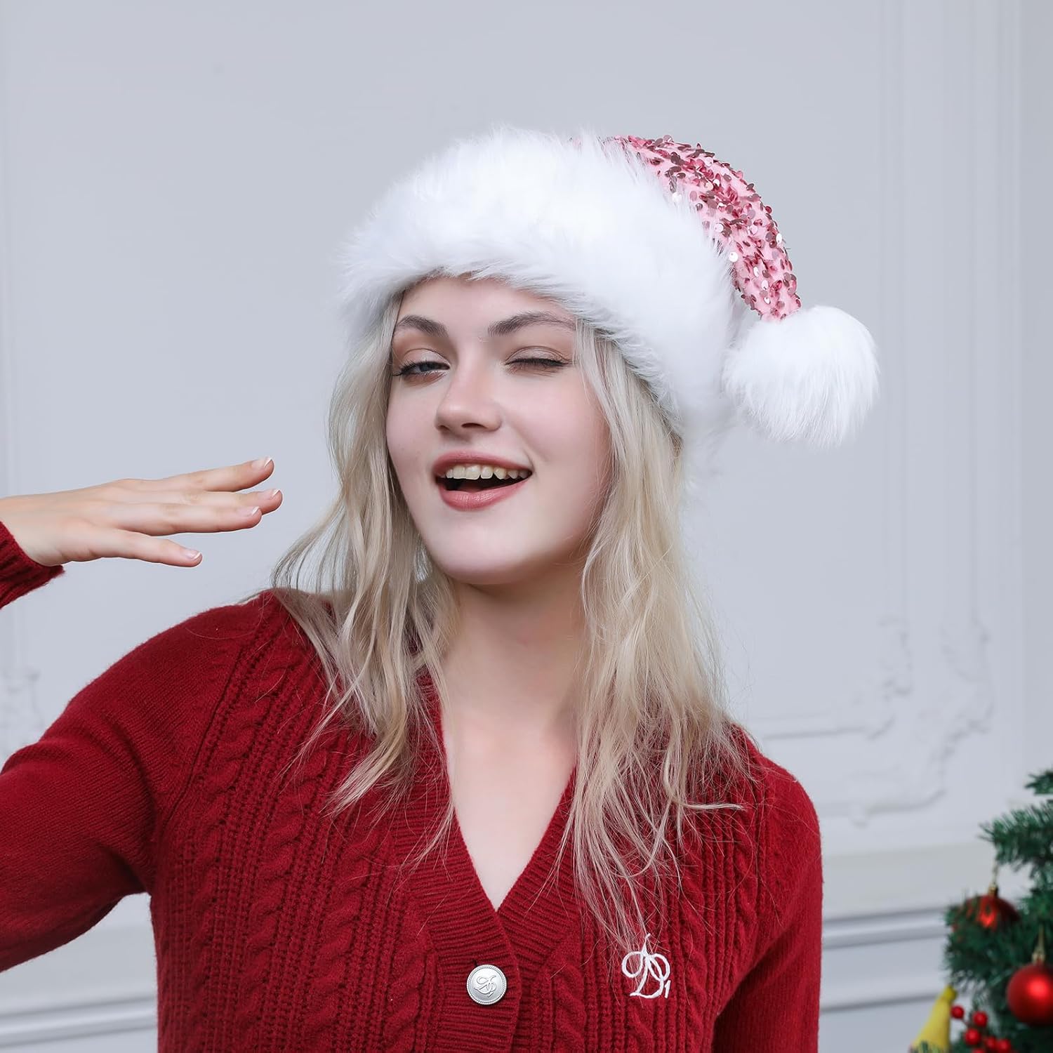 • FESTIVE DESIGN: Christmas hat with sequin design and brim faux rabbit fur,Xmas hats are suitable for holiday party favors on various occasions, Christmas, Halloween, New Year and shows etc.